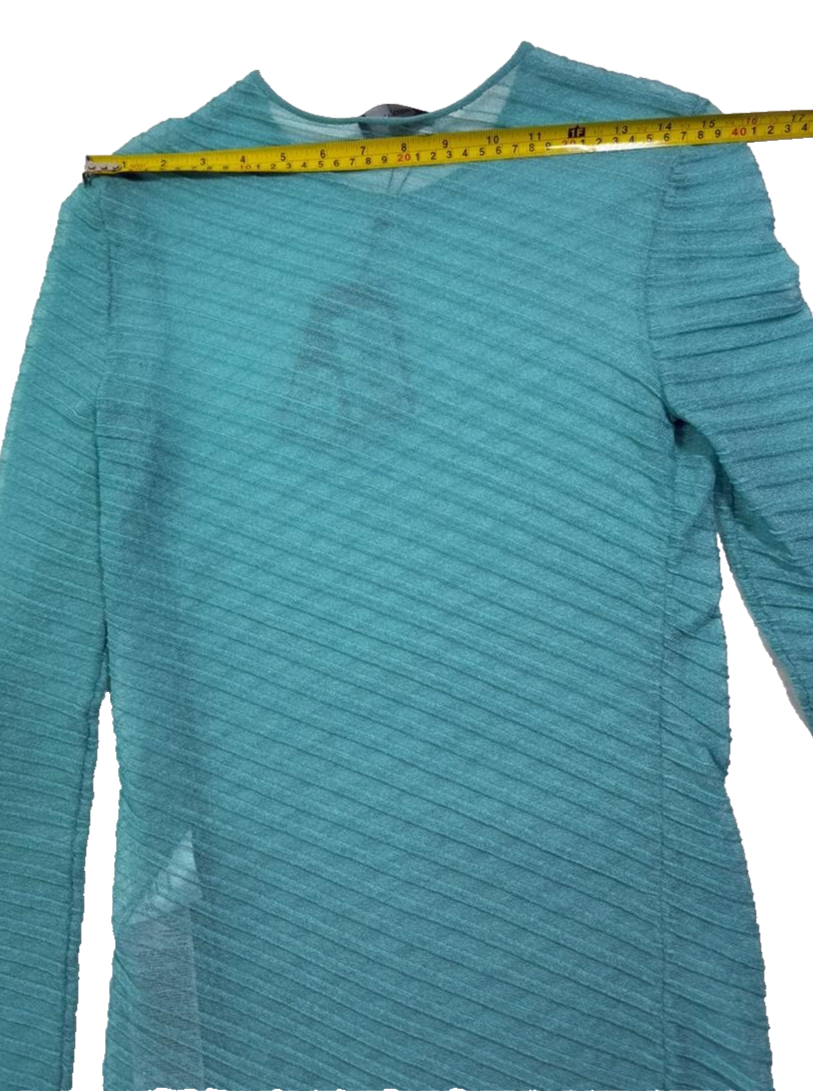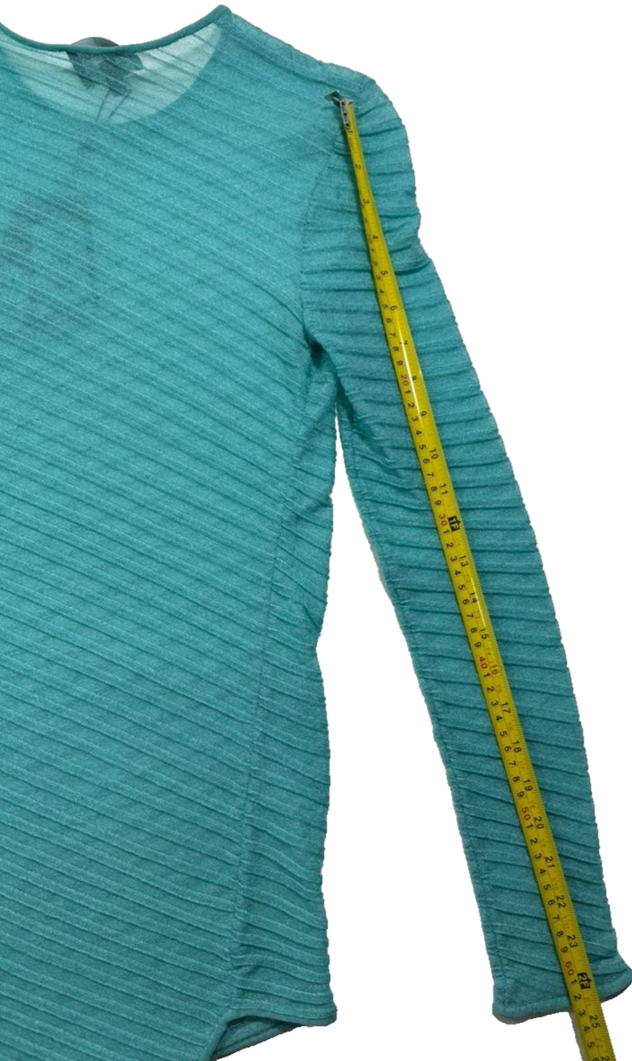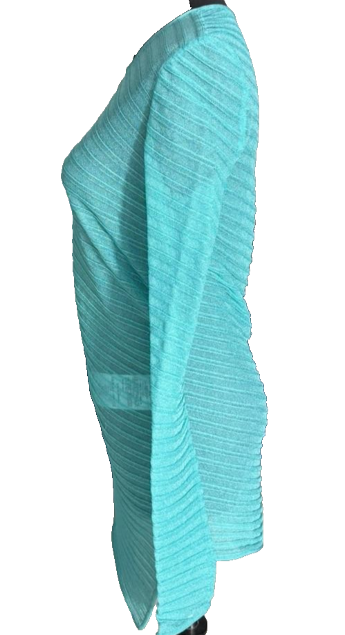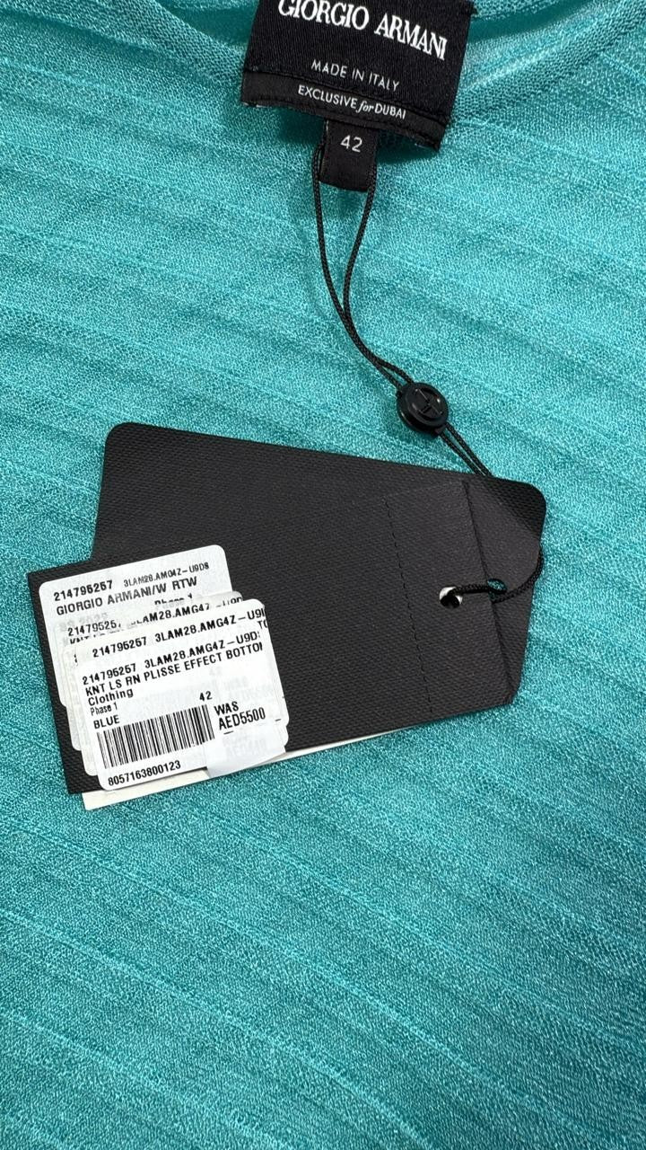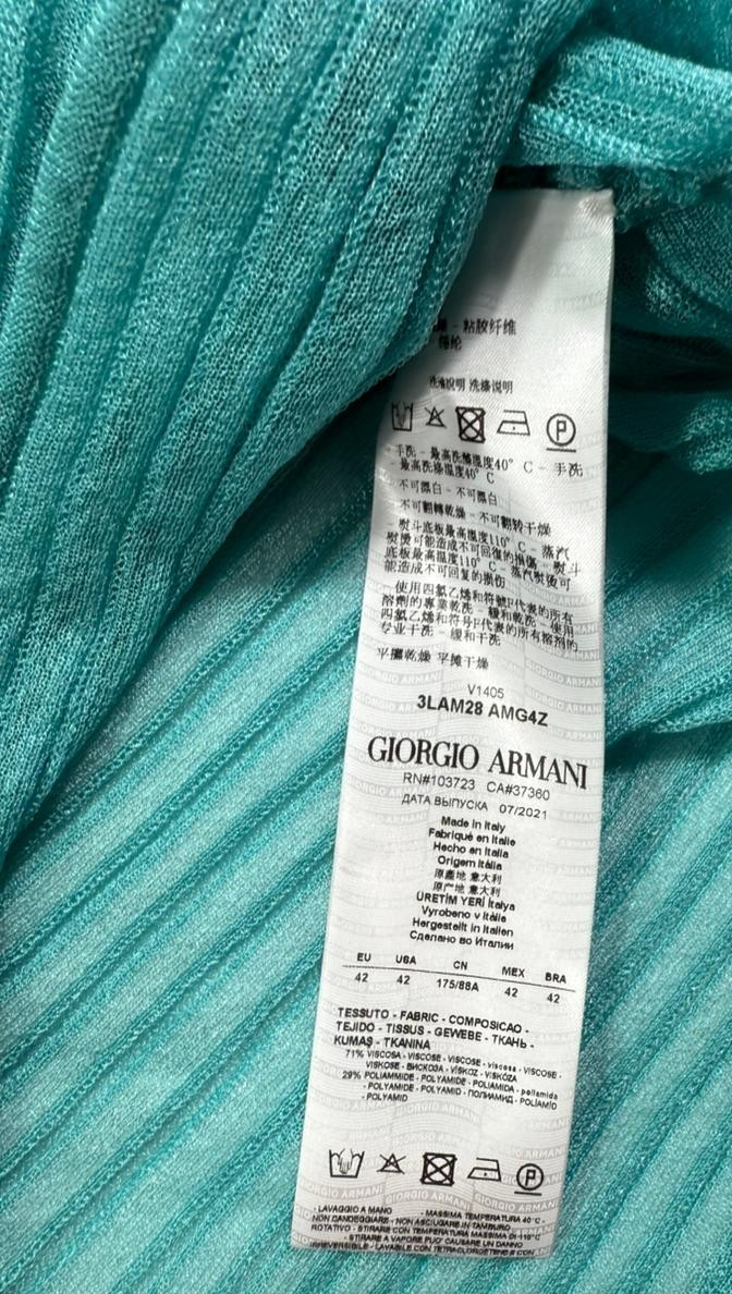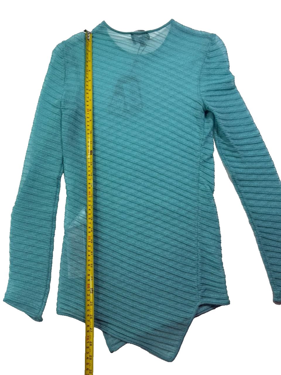 Bnwt Giorgio Armani Women�S Sheer Ribbed Asymmetric Top Turquoise Size 42,