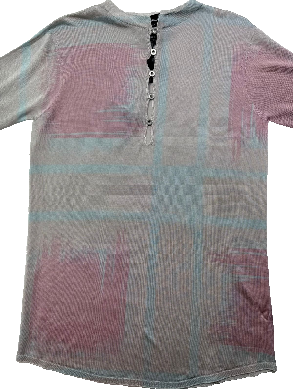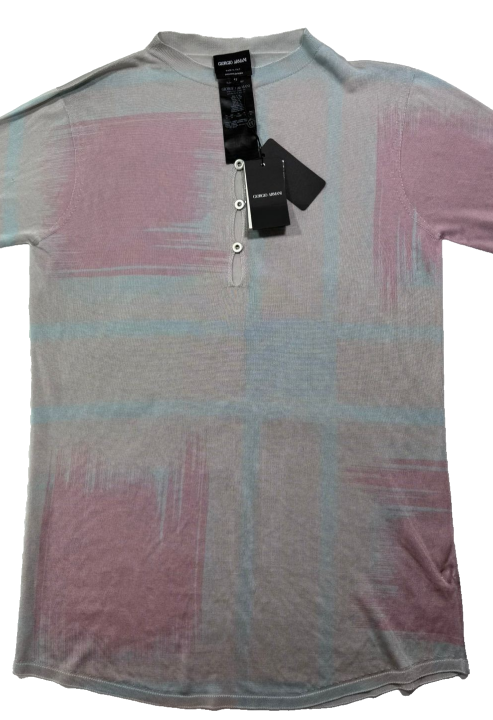 Bnwt Giorgio Armani Women Slim Fit Henley Top Lightweight Printed Knit Size 42,