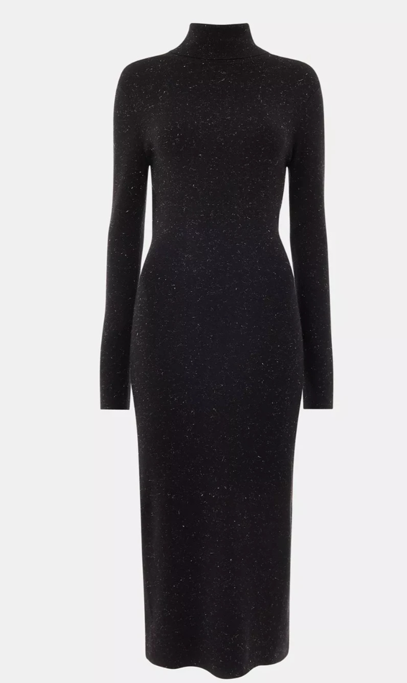 Boohoo Sparkle Roll Neck Midi Dress |Black | 8