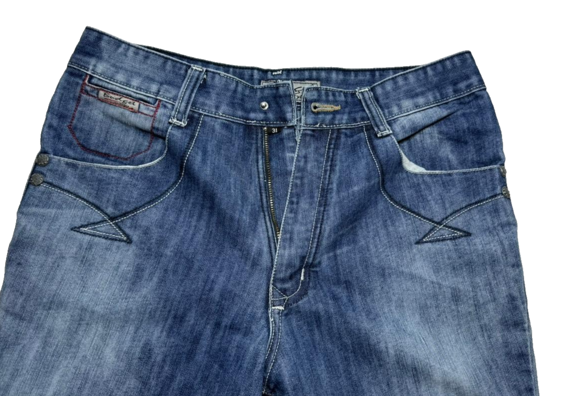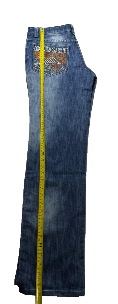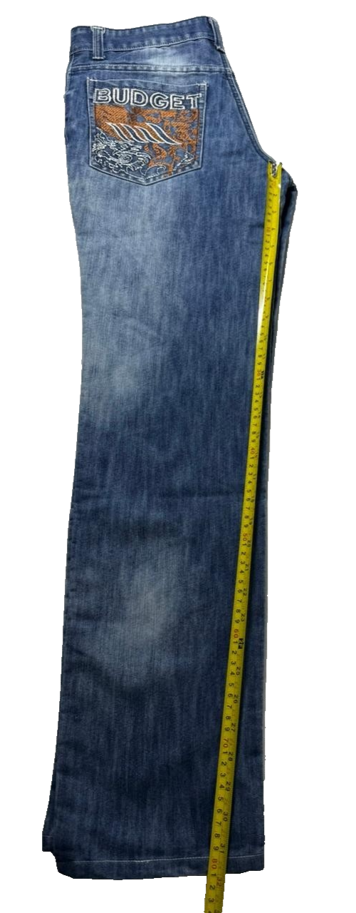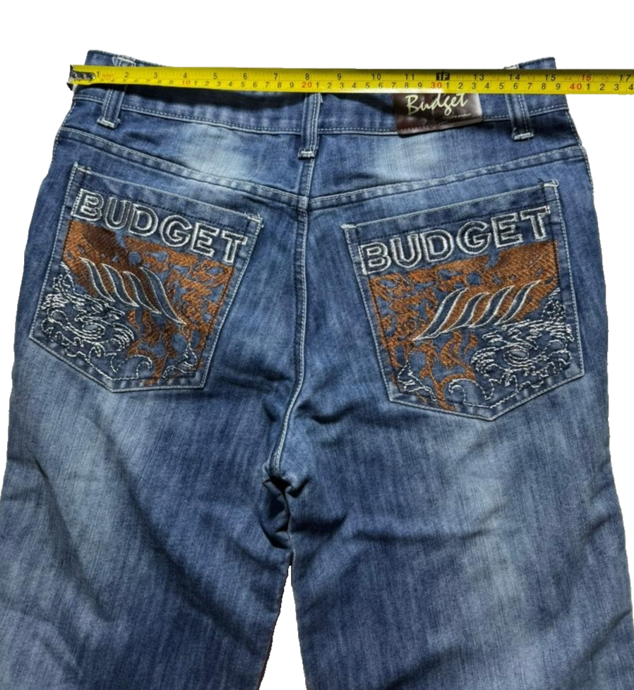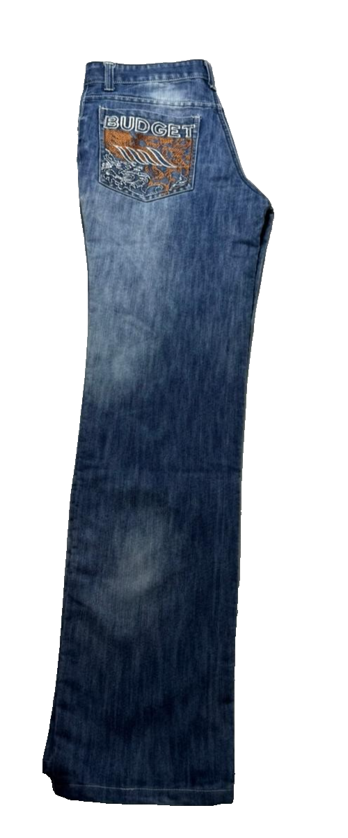 Budget Men'S Faded Denim Jeans - Embroidered Back Pockets, Straight Leg, Size 36