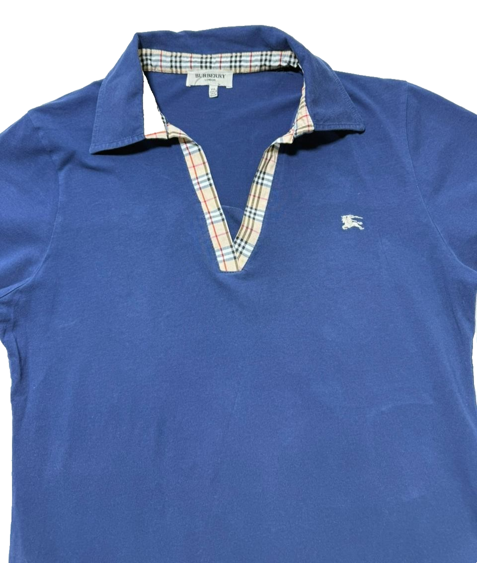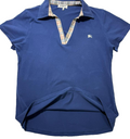 Burberry Blue Plaid Trim Polo Shirt Womens Size 3Xl