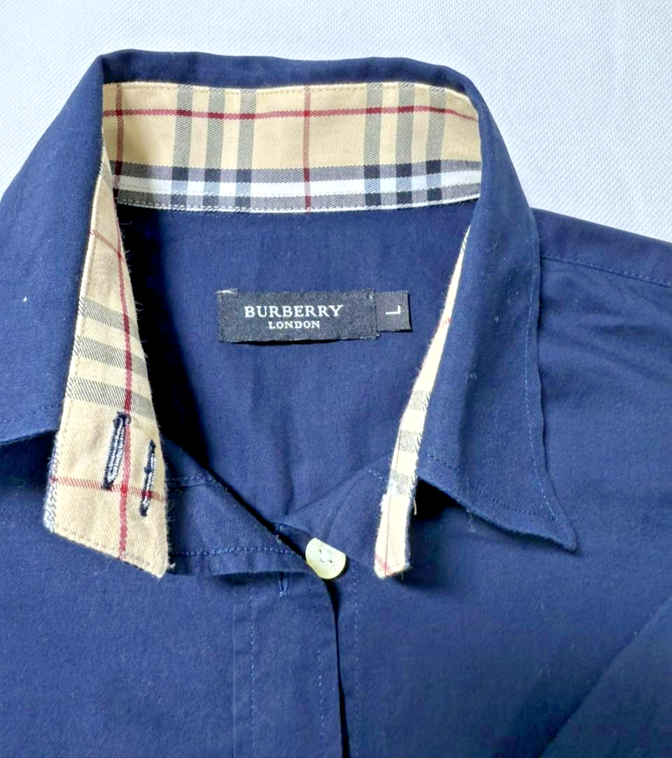Burberry Brit Men'S Navy Flip Cuff Long Sleeve Button Front Shirt Nova Check
