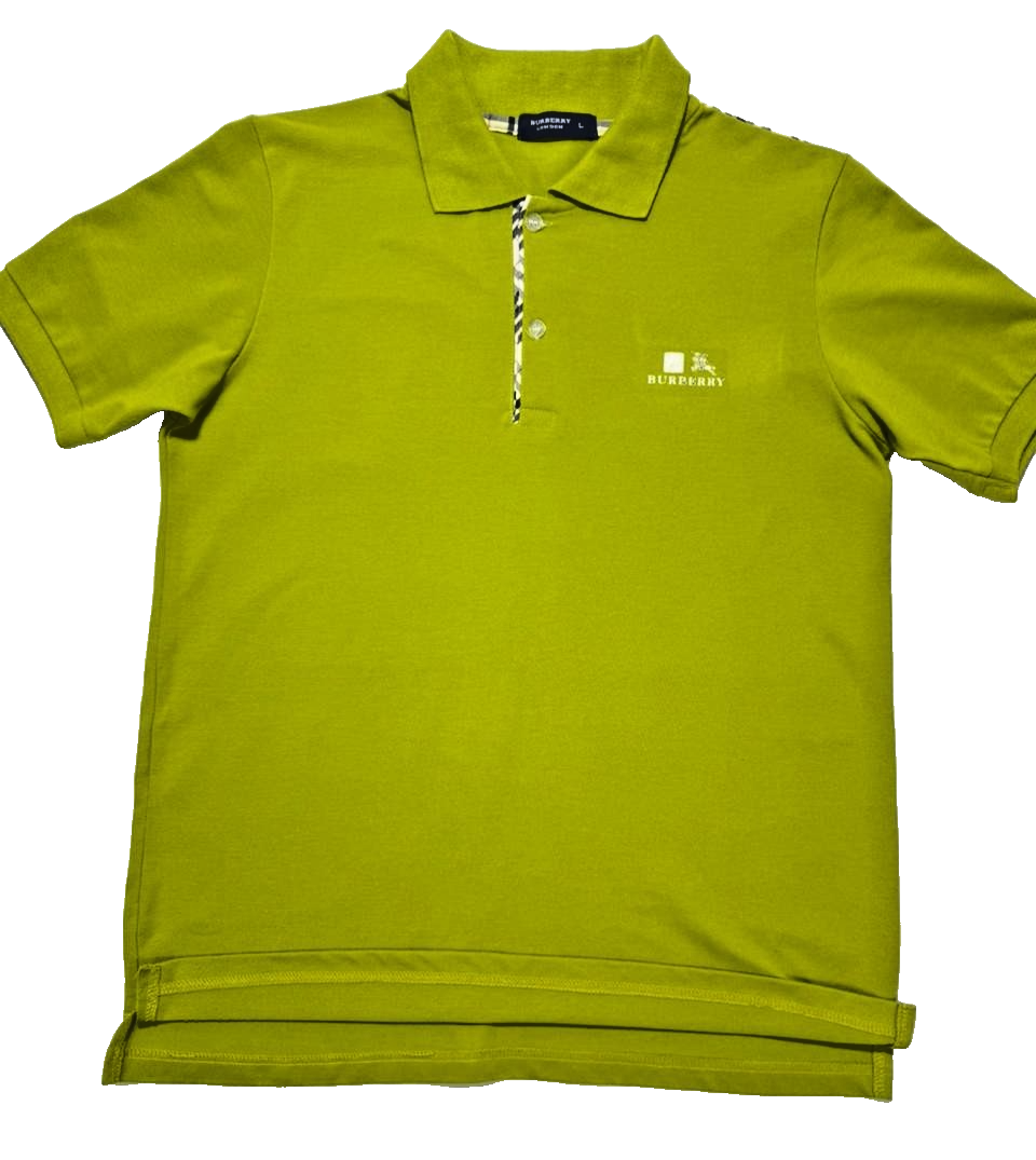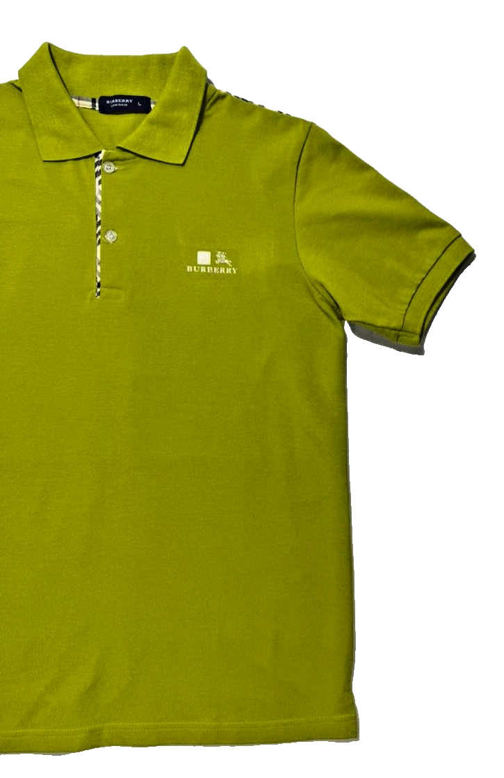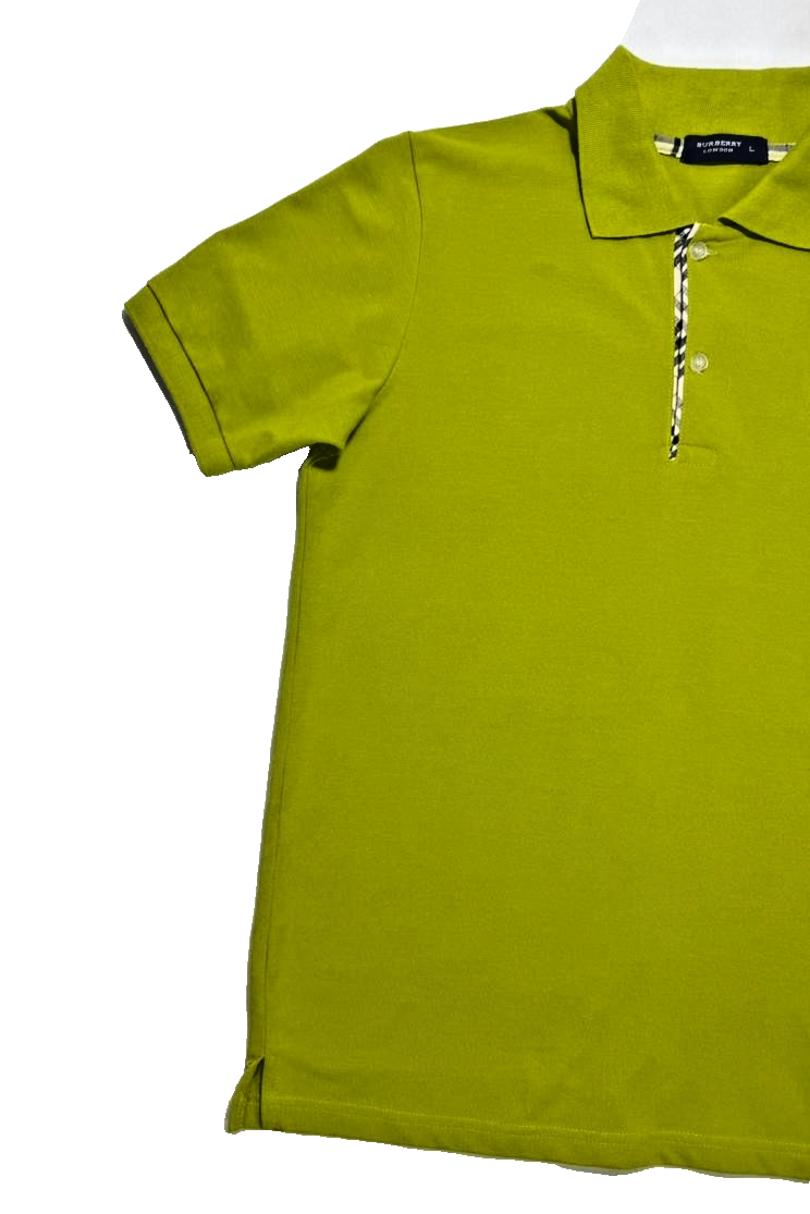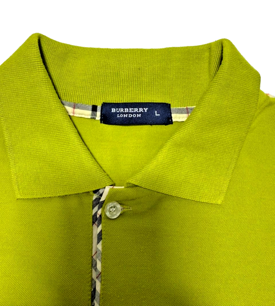 Burberry Lime Green Check Trim Polo Shirt For Men - Size L