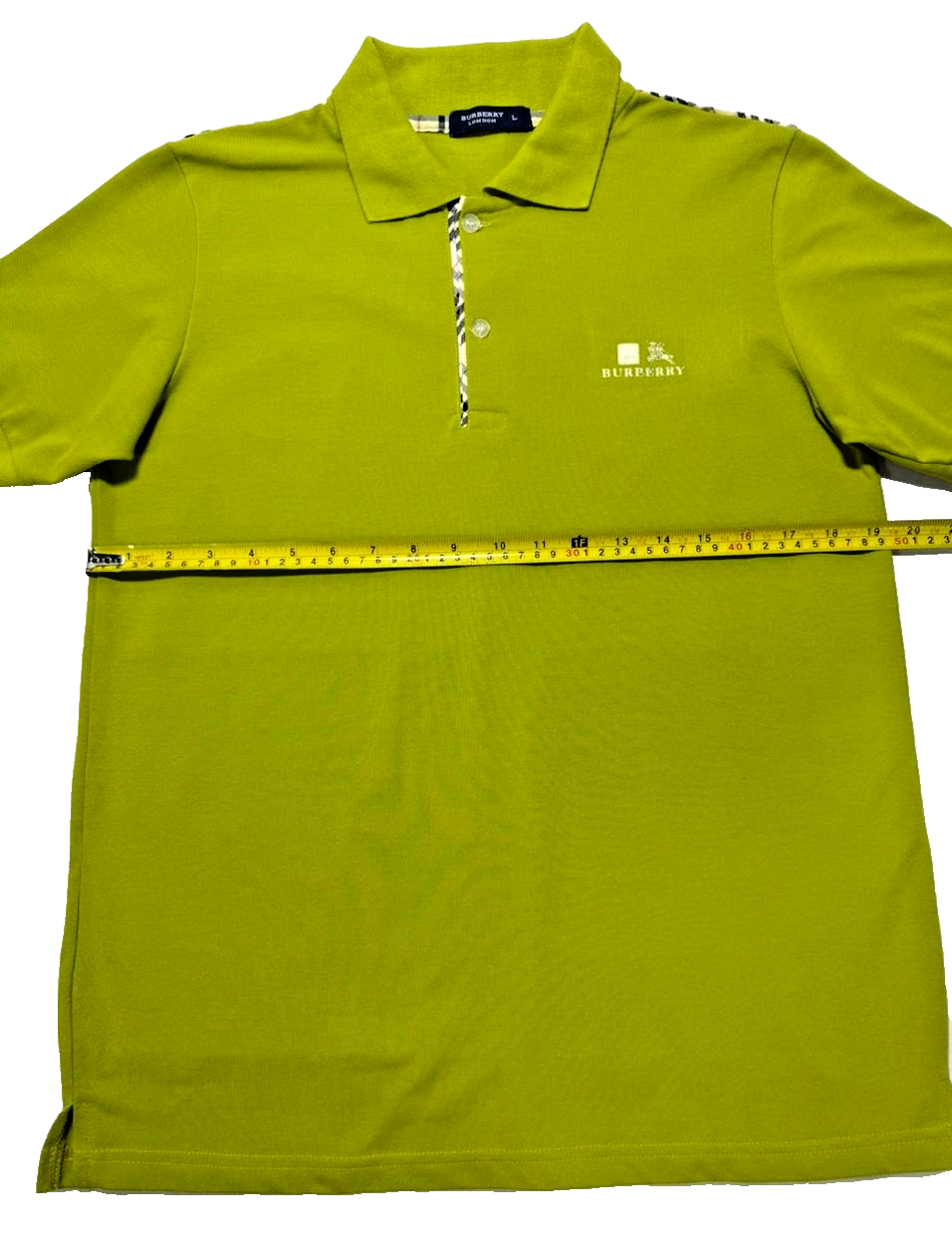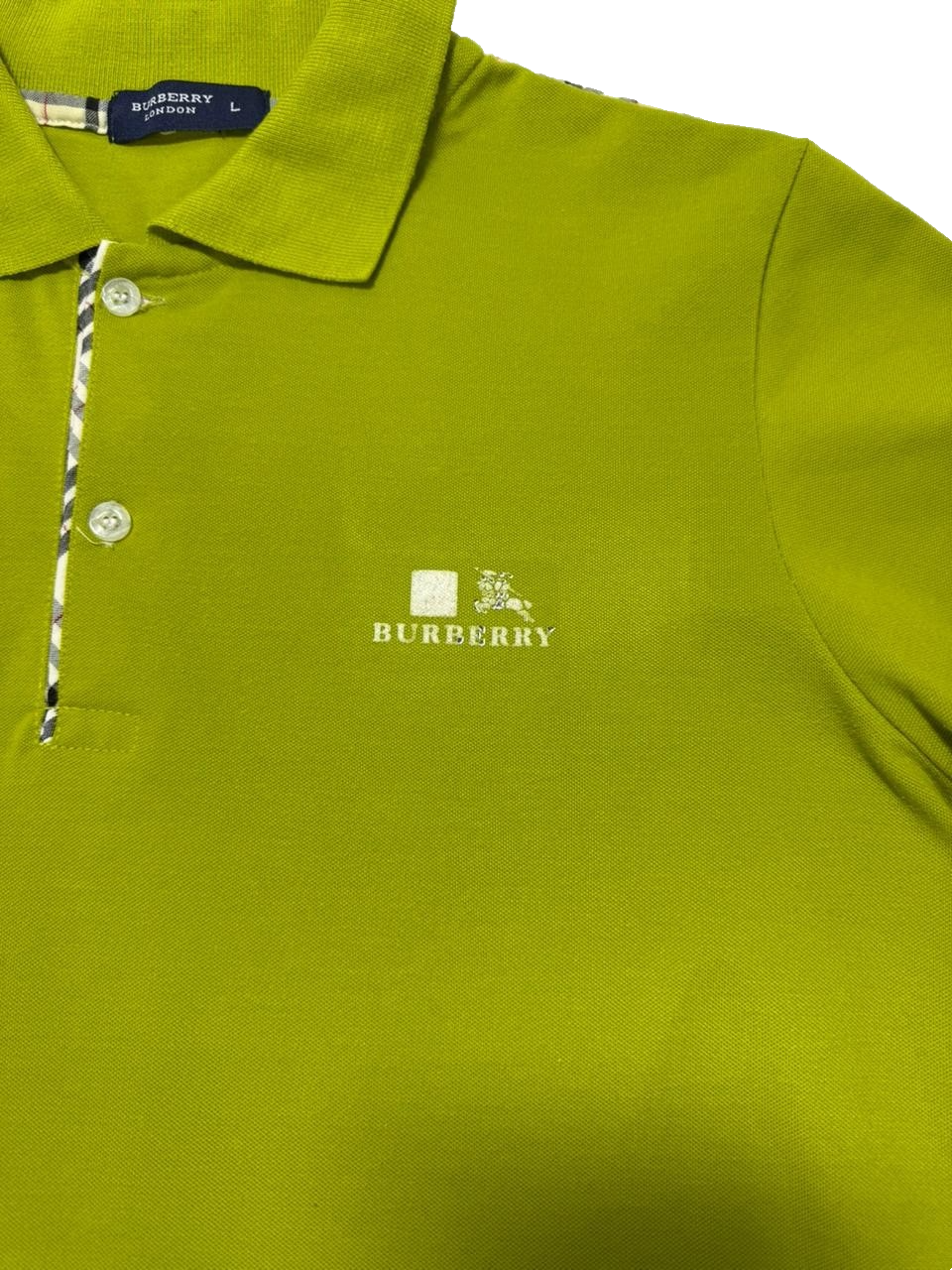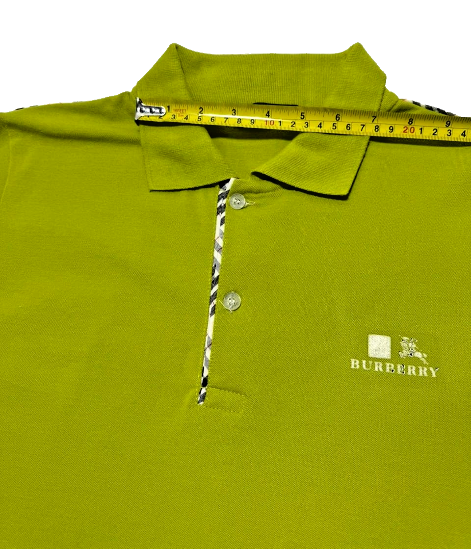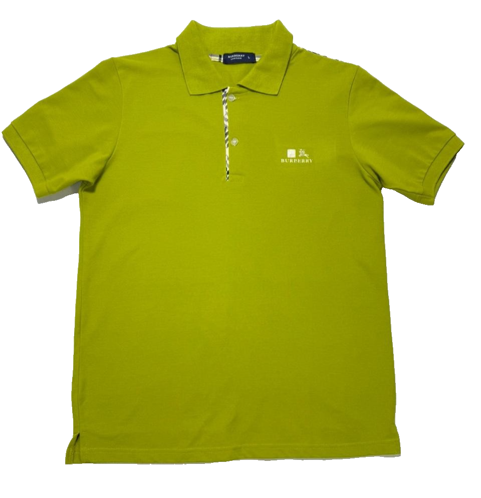 Burberry Lime Green Check Trim Polo Shirt For Men - Size L
