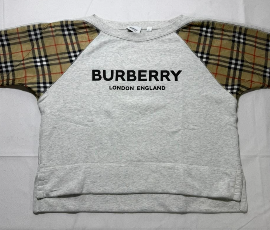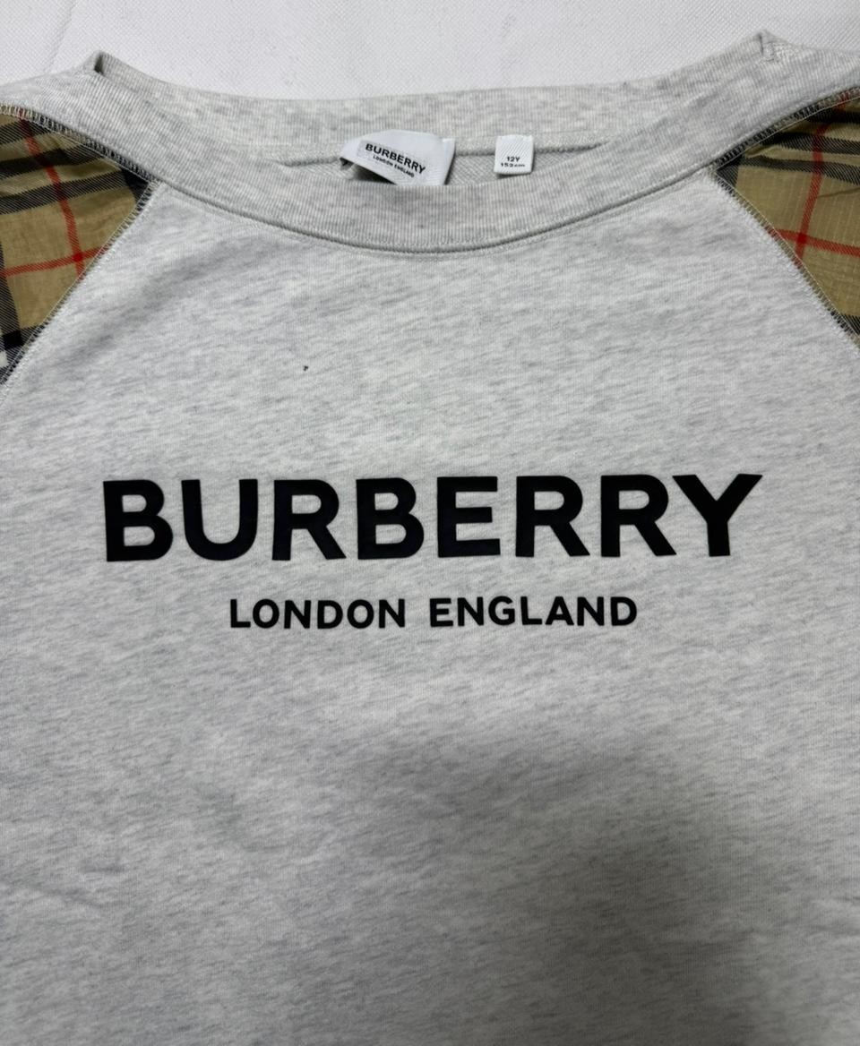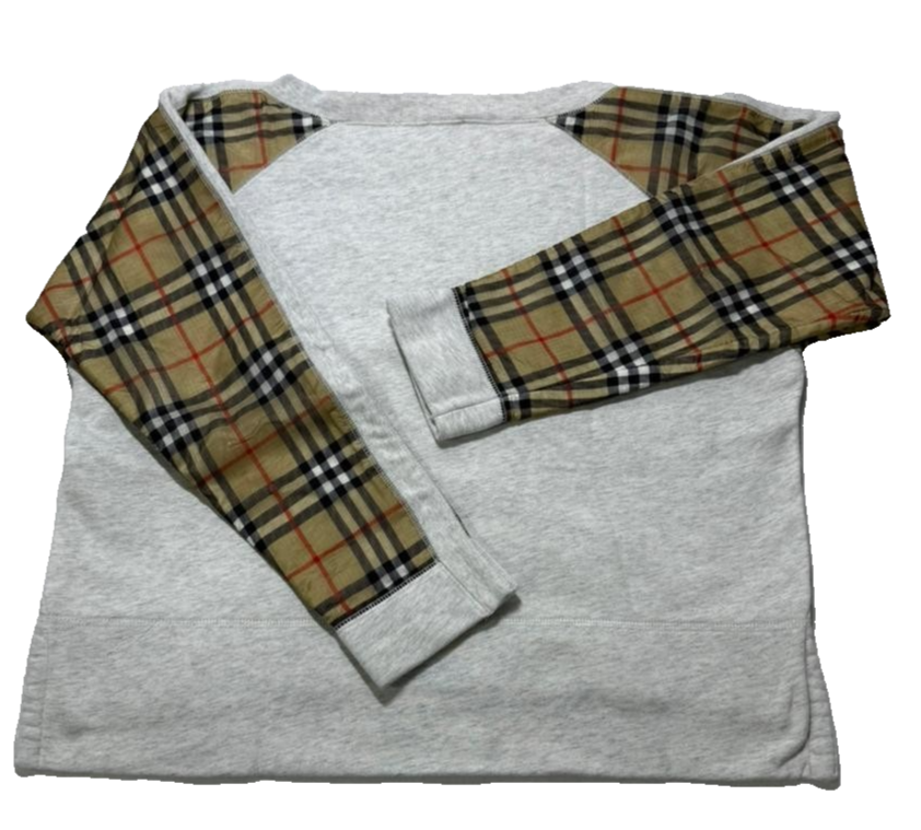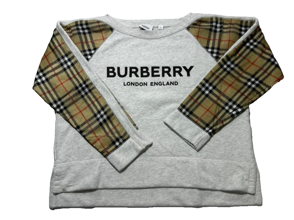Burberry London Grey Sweatshirt Nova Check Sleeve Panel |12Y| 152Cm
