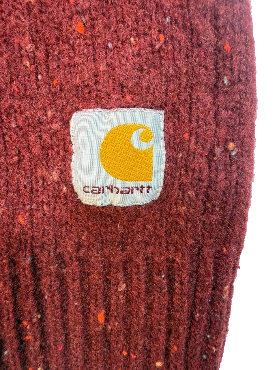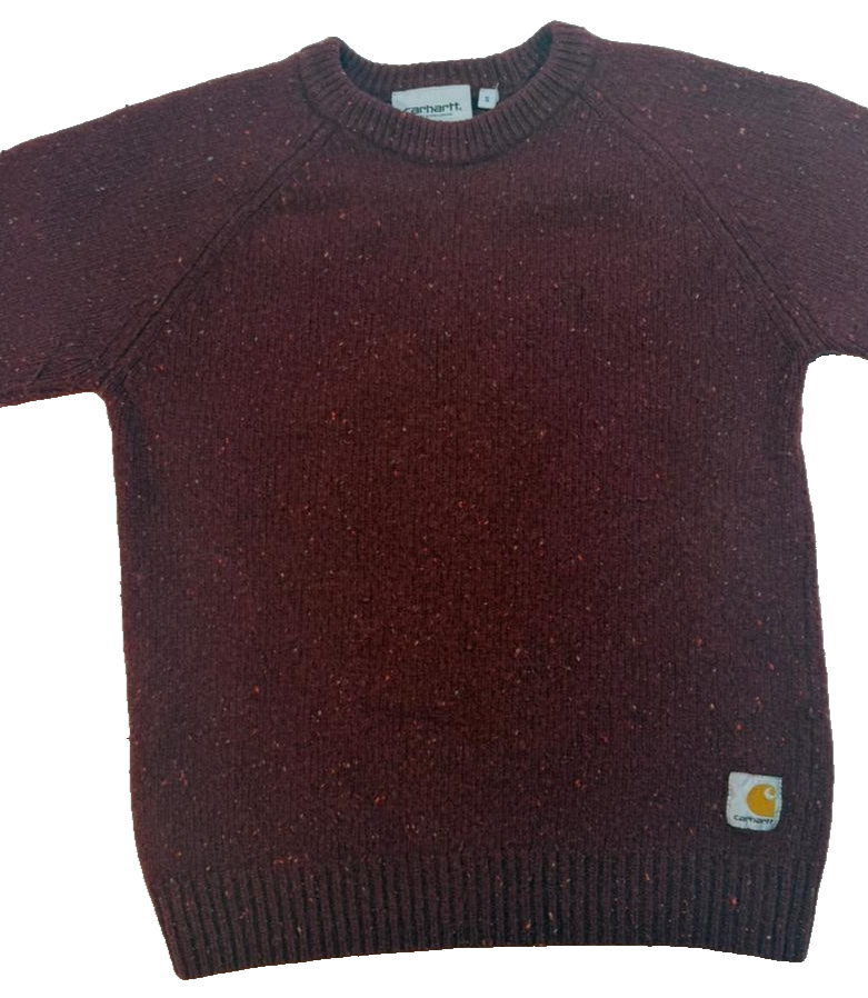 Carhartt Wip Men'S Red Burgundy Wool Blend Crewneck Sweater Knit Speckled Size S