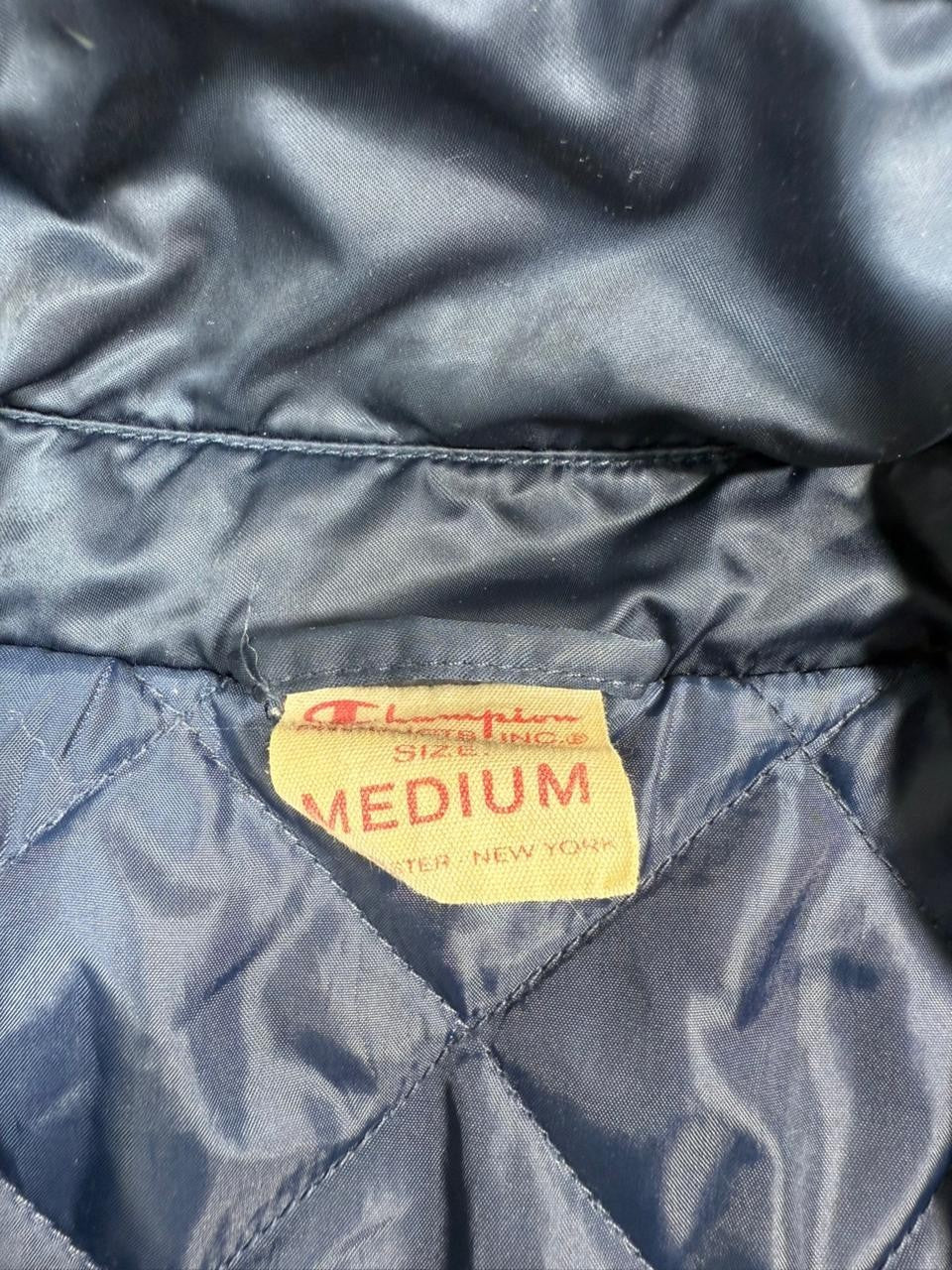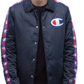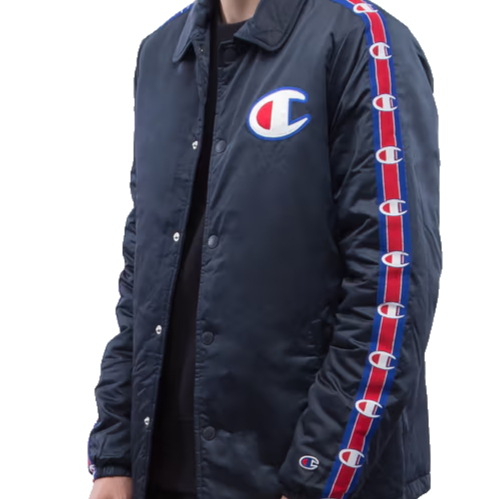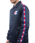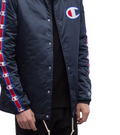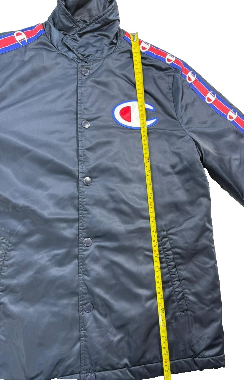 Champion Men's Navy Coach Jacket Logo Tape Sleeves Quilted Lining Size M