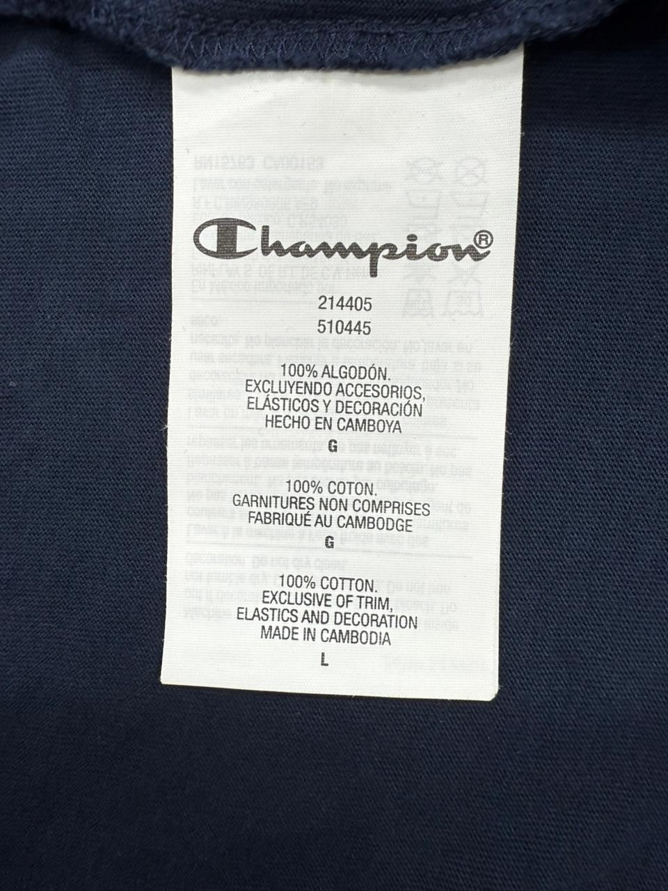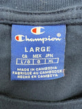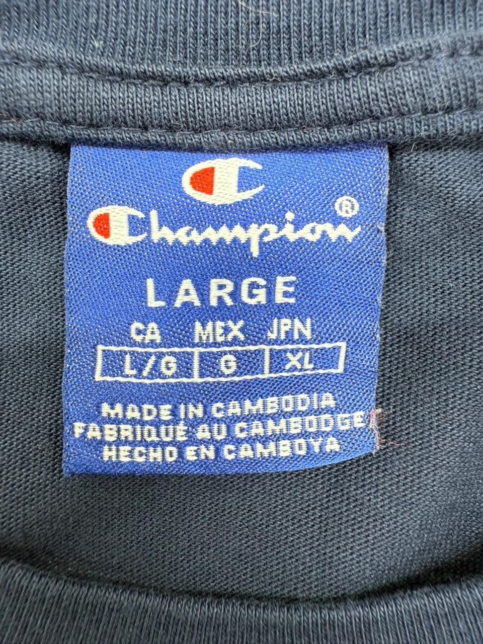 Champion Navy Blue Big Logo T Shirt Crewneck Men’s Size L Made in Cambodia