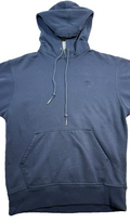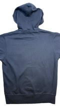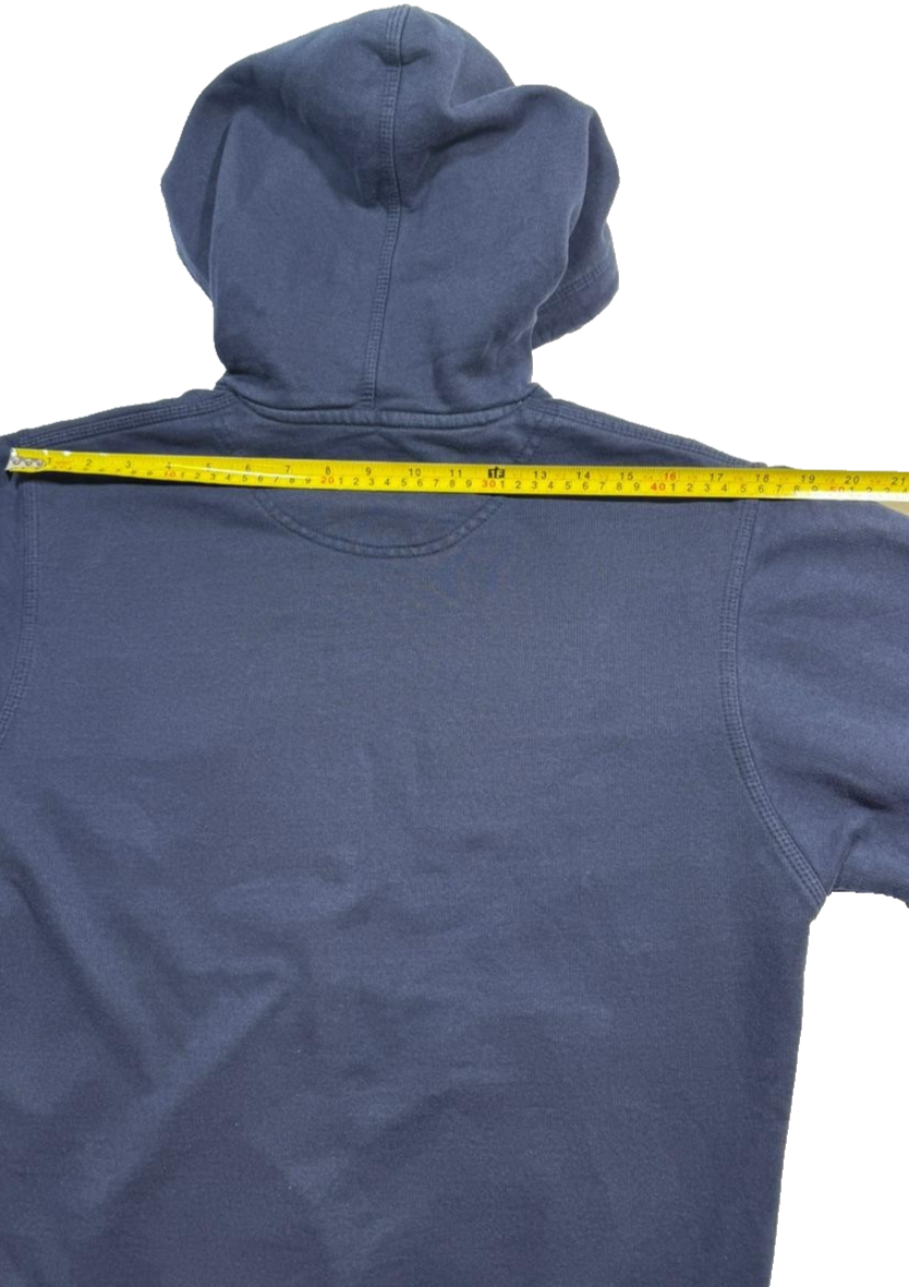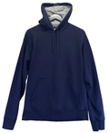 Champion Navy Blue Pullover Hoodie Small Logo Gray Lined Hood Sweatshirt Size S