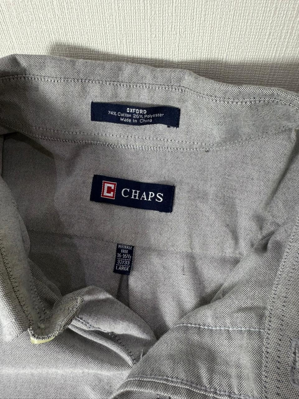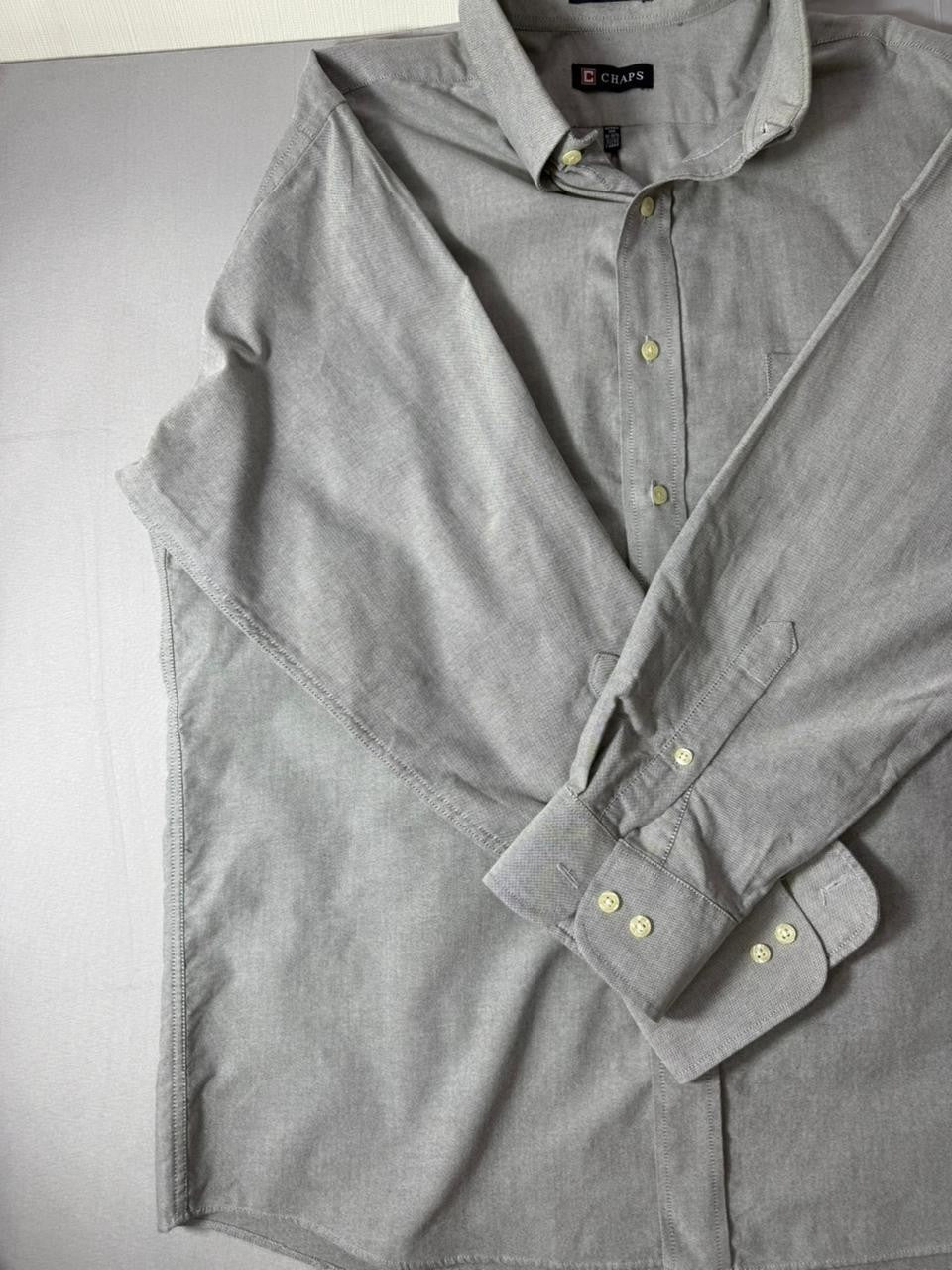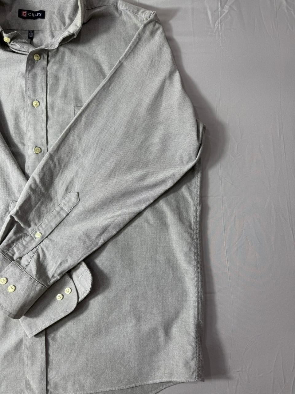 Chaps Gray Oxford Shirt Mens Large Wrinkle Free Button Down Long Sleeve
