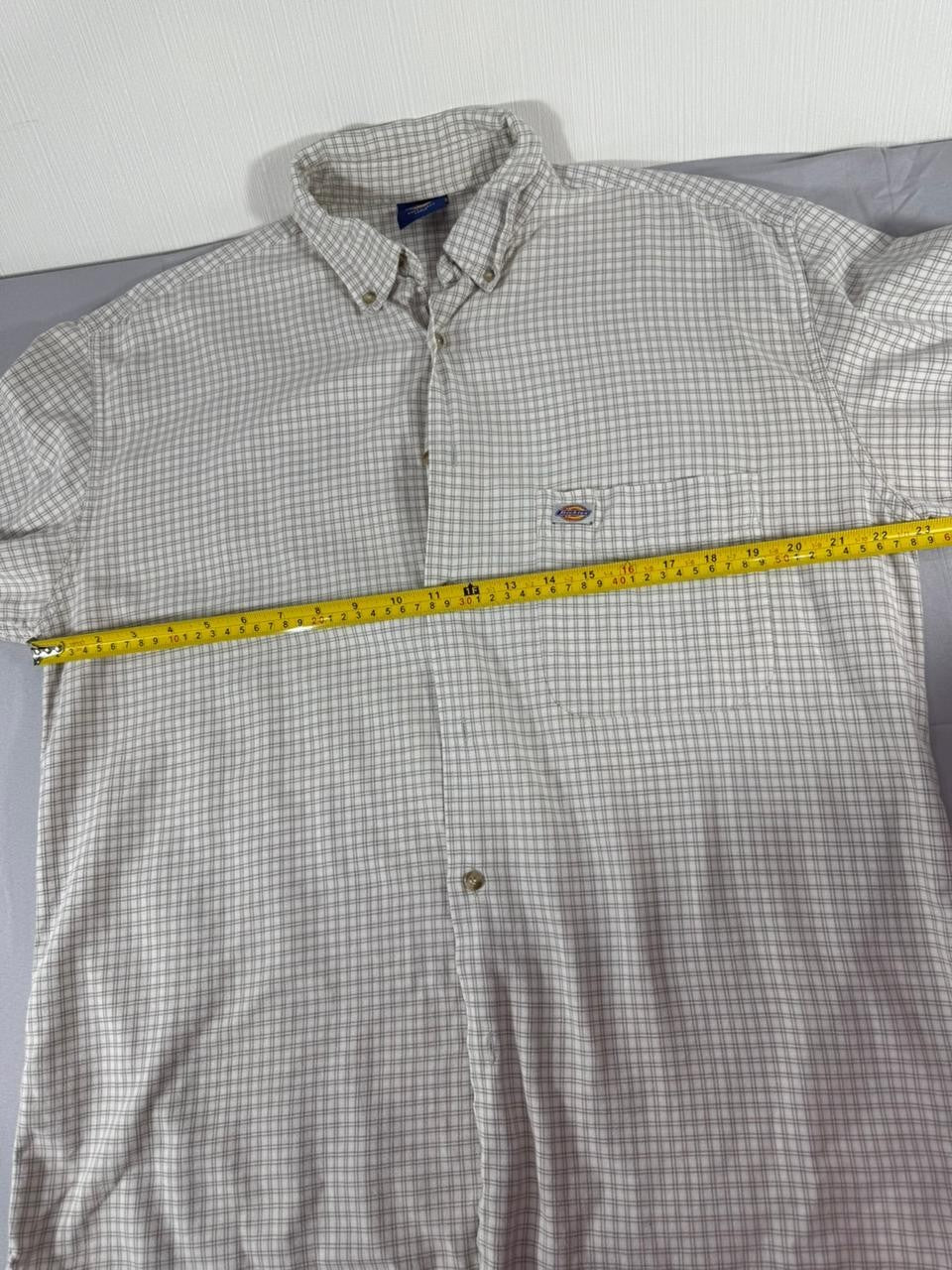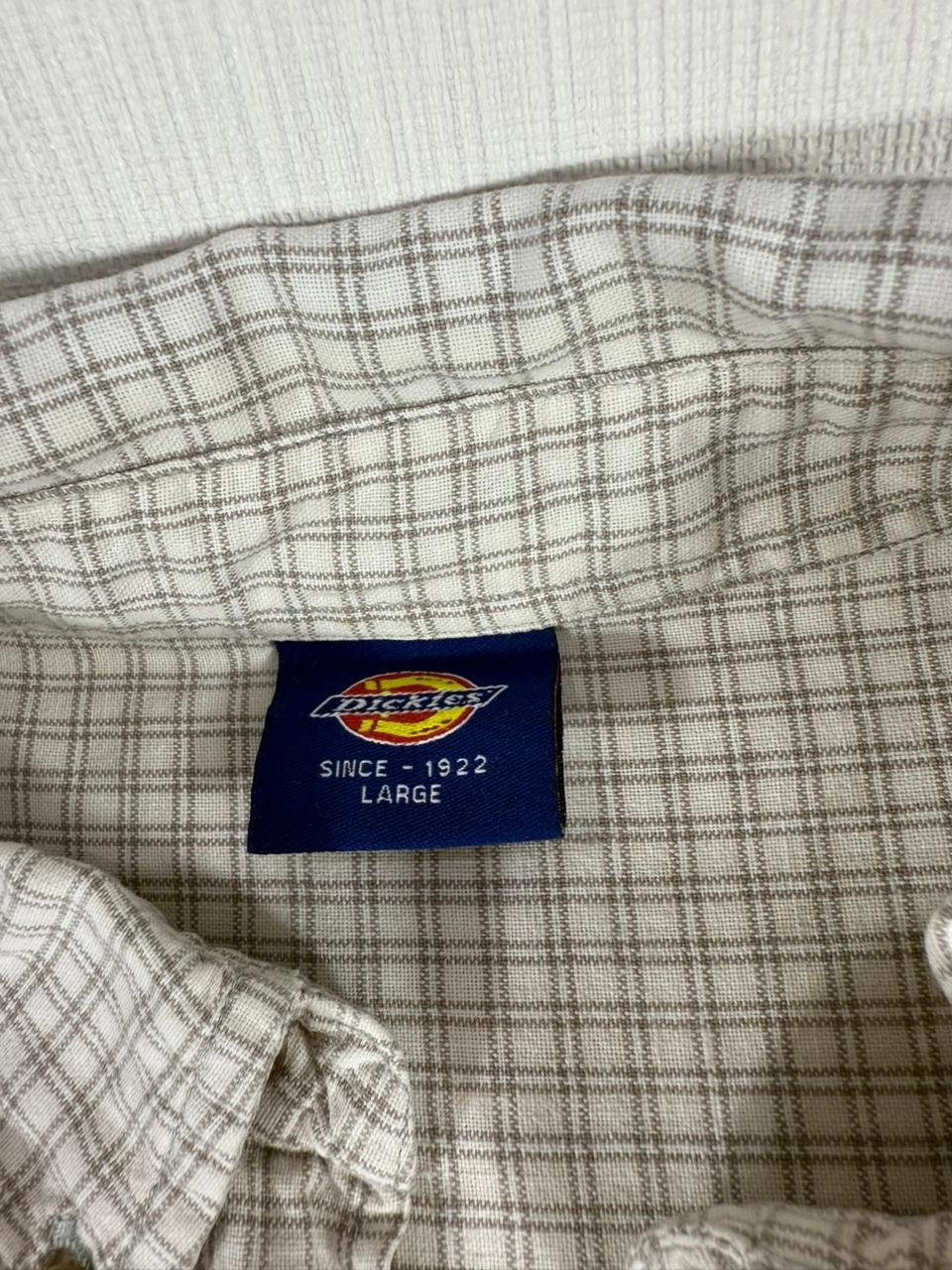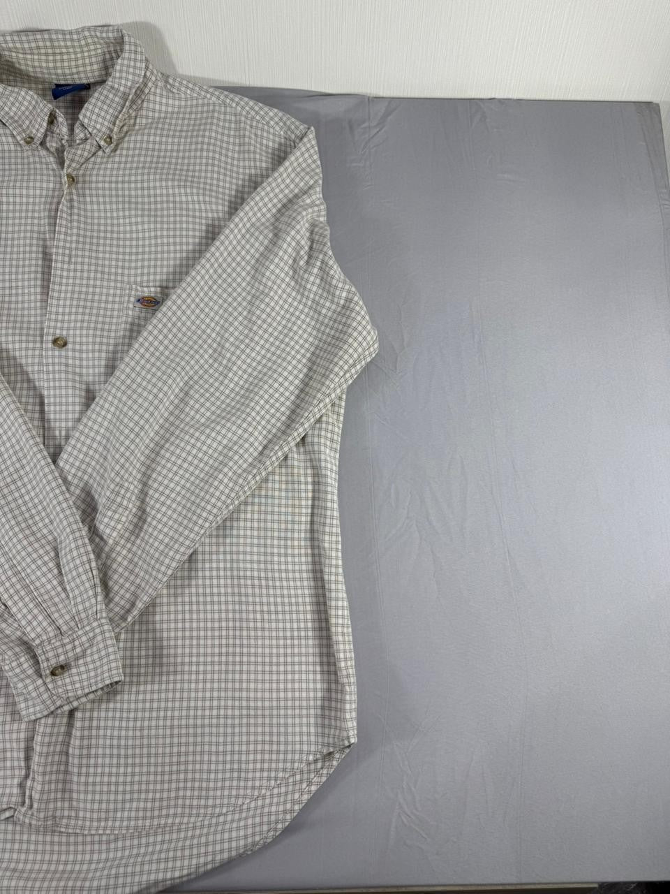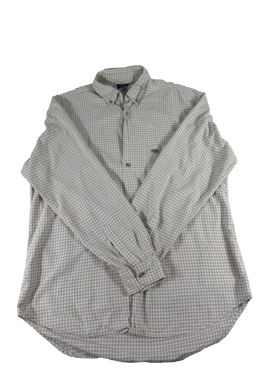 Dickies Men’s Button Up Shirt Large L Grey Check Long Sleeve Workwear