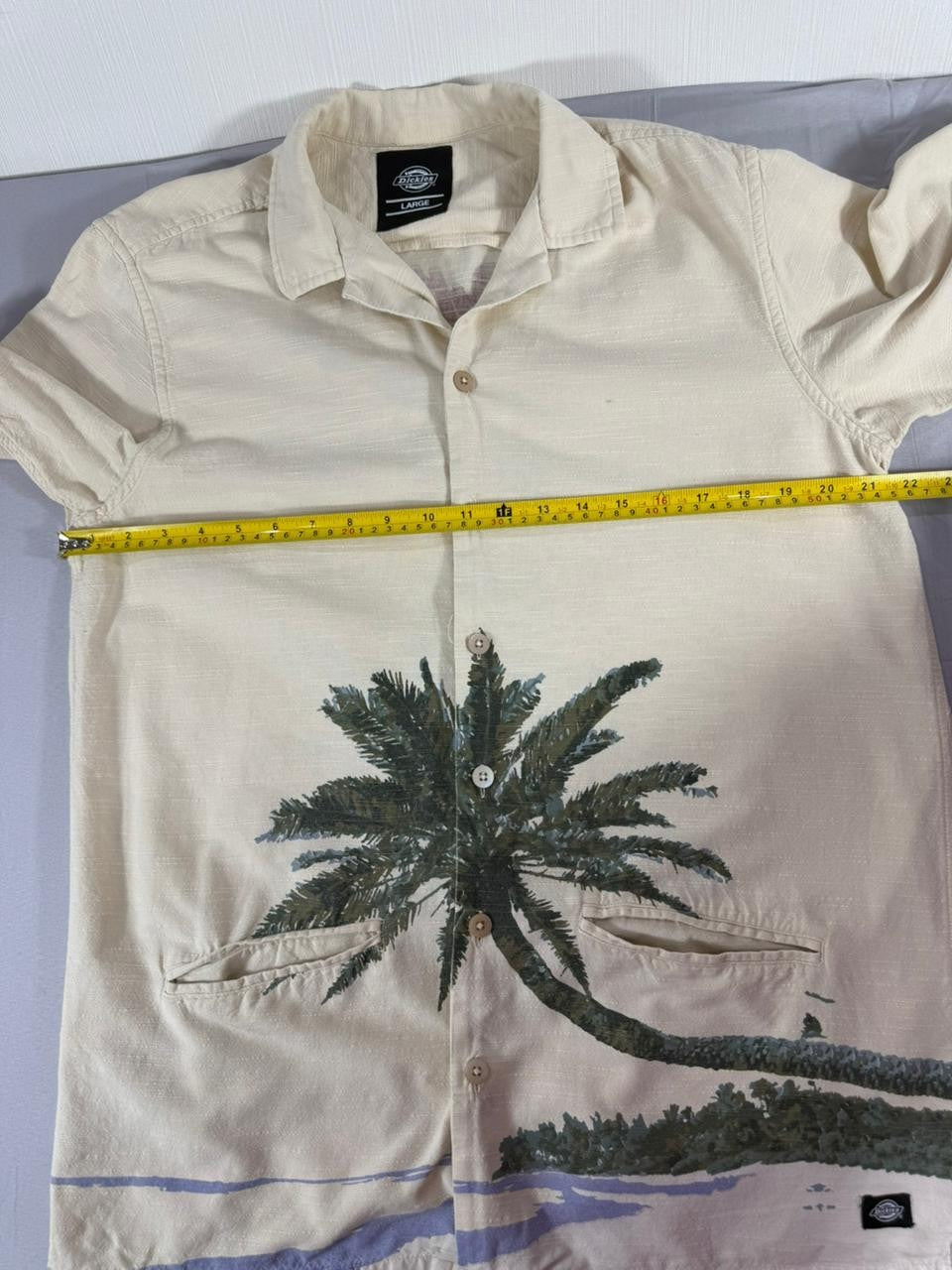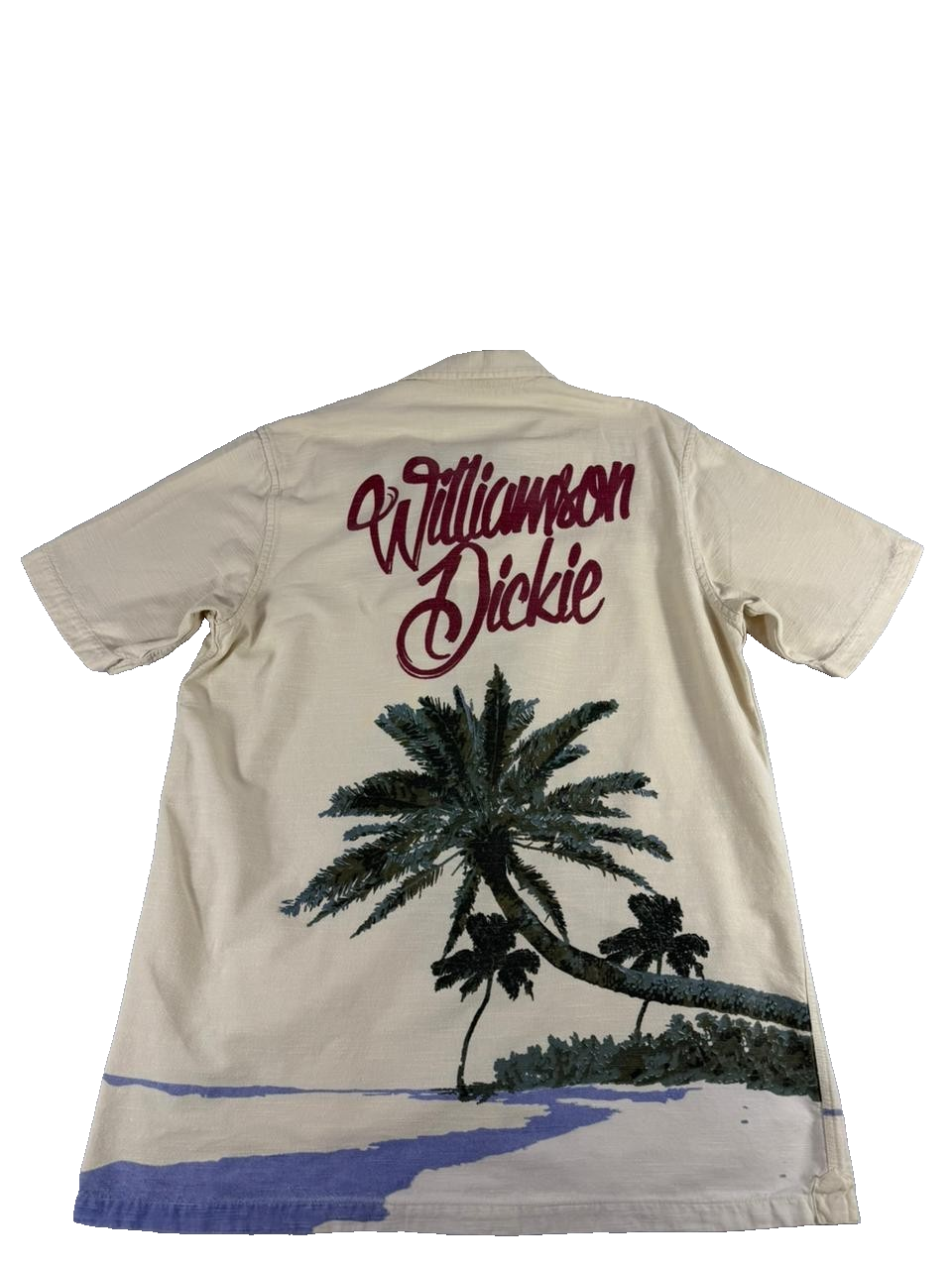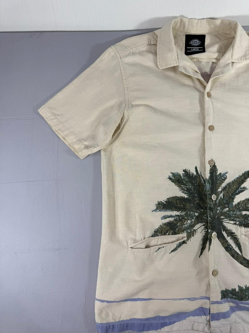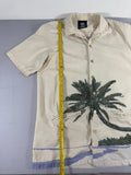 Dickies Men’s Large Beige Tropical Palm Print Short Sleeve Button-Up Shirt 100%
