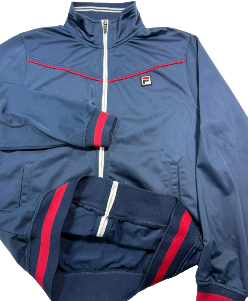 Fila Men'S Navy Blue Tennis Track Jacket Red White Trim Full Zip Size M