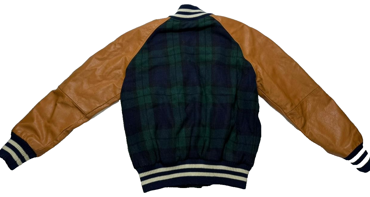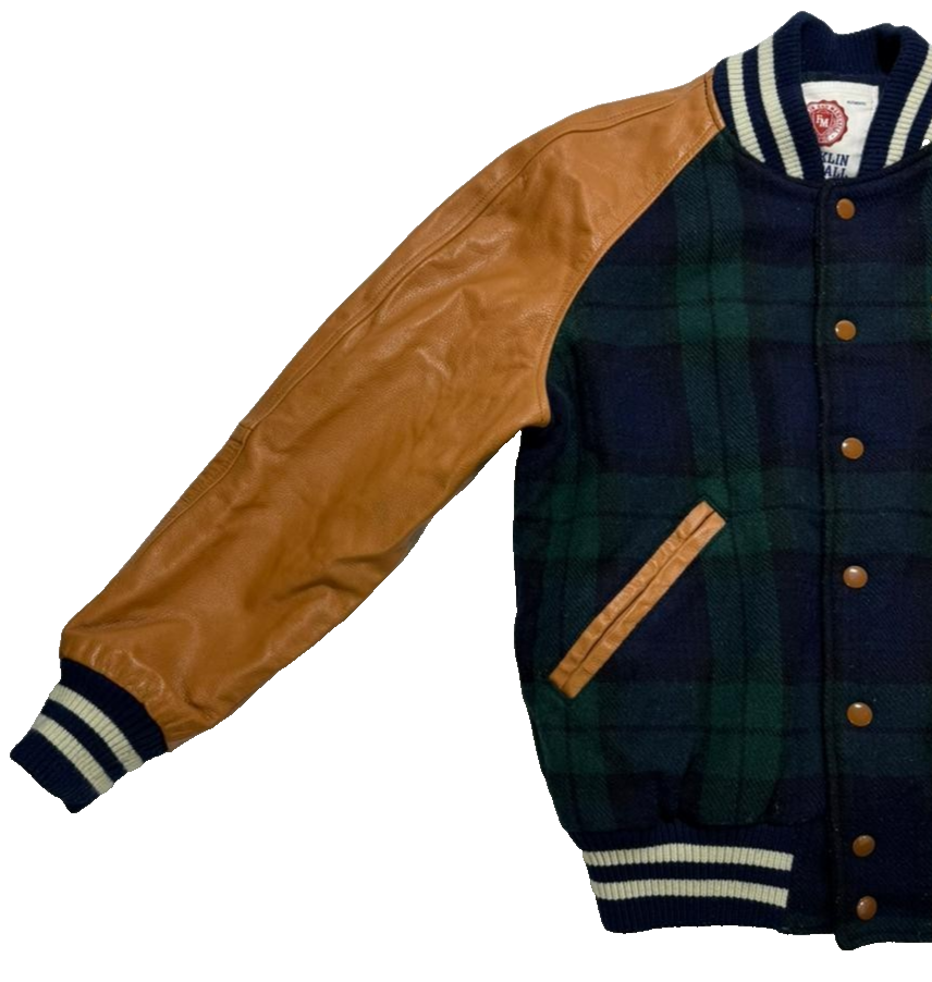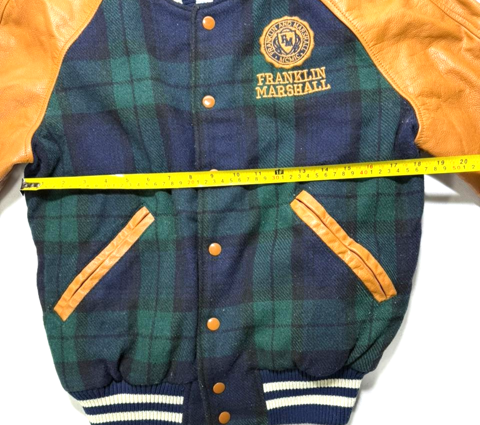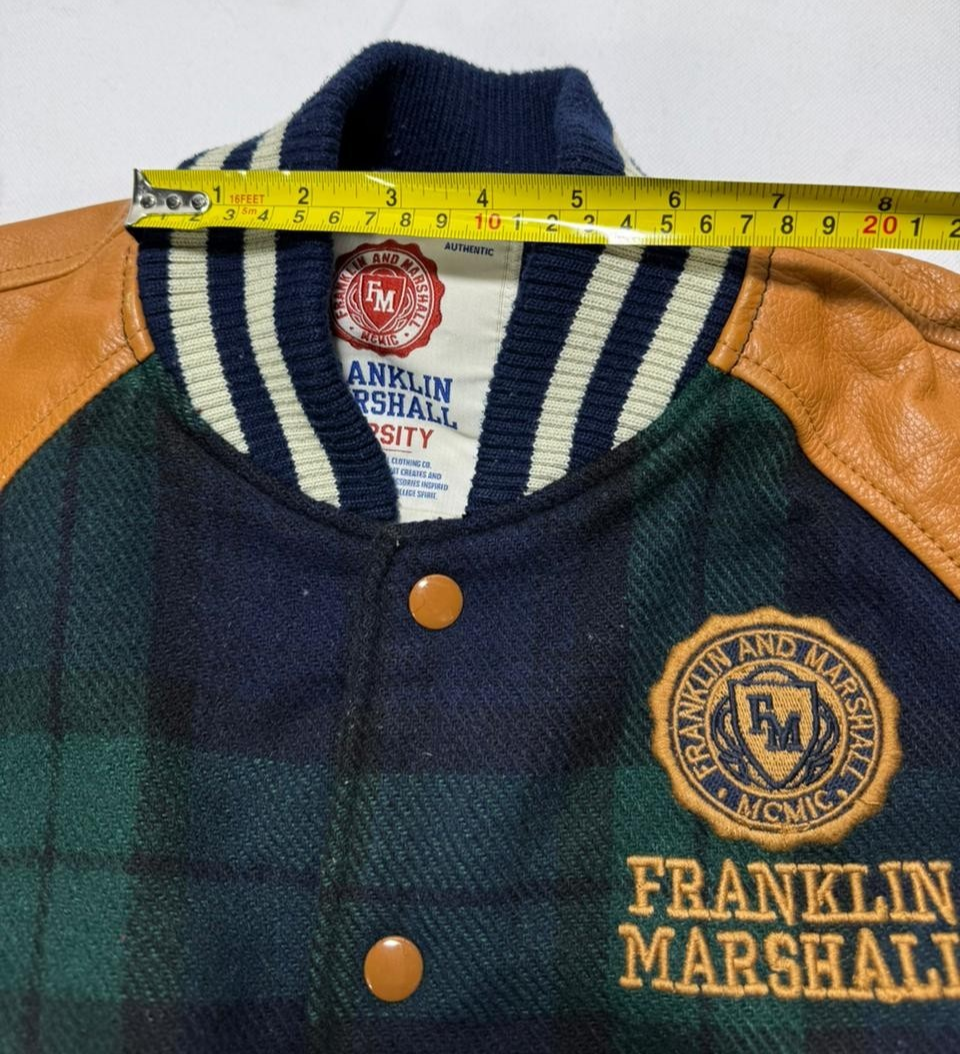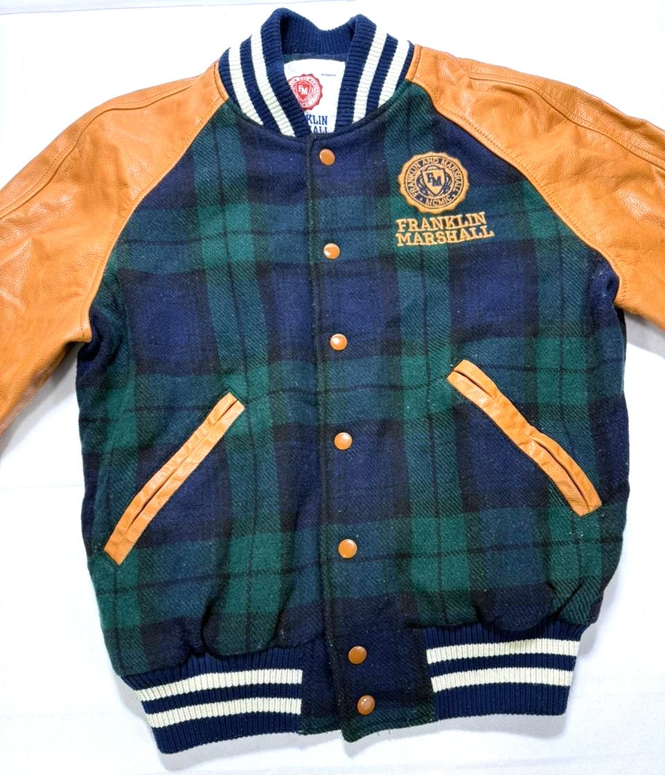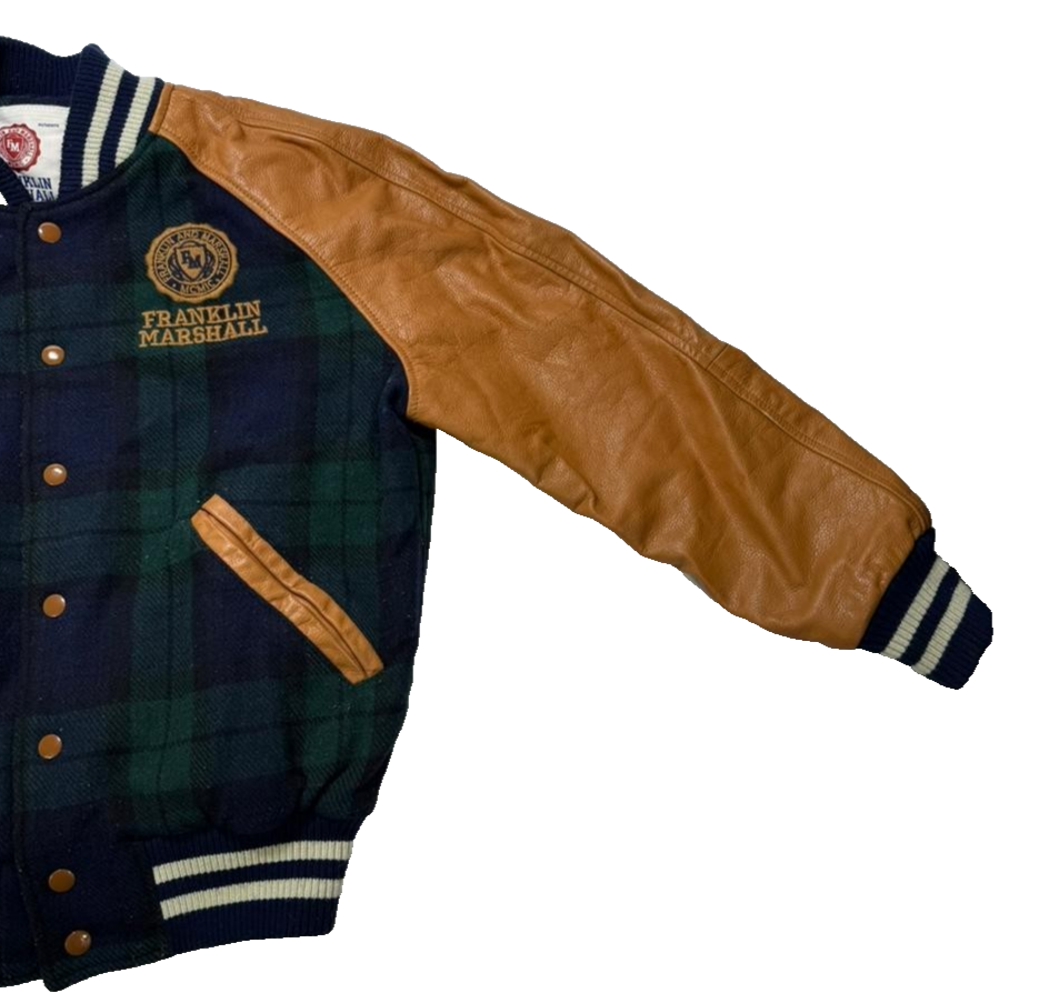 Franklin & Marshall Varsity Jacket With A Blue And Green Plaid Wool - Size Xs