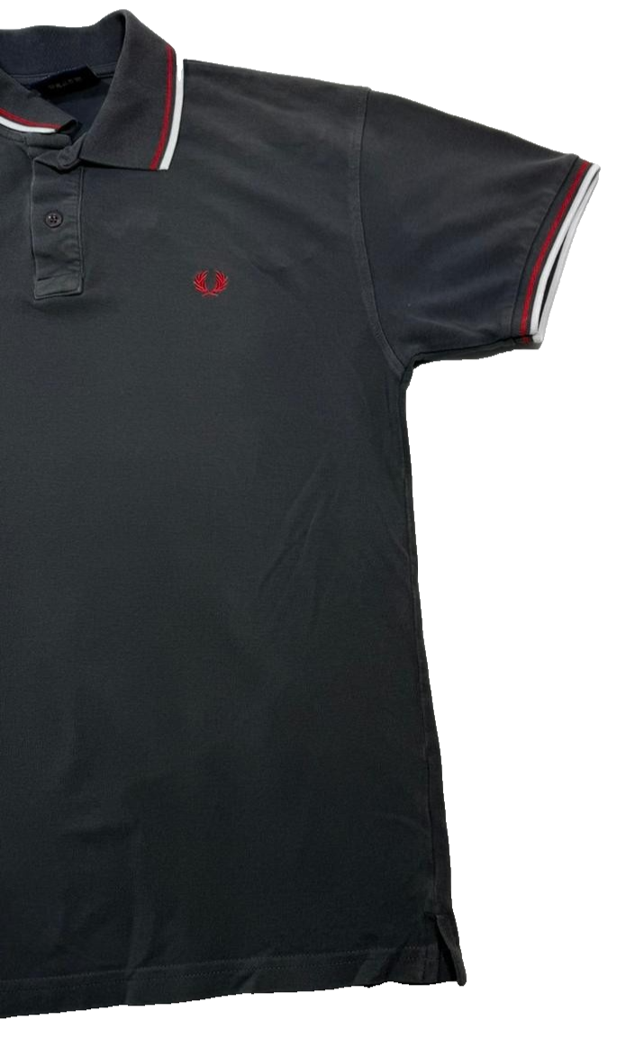 Fred Perry Dark Gray Pique Polo Shirt Red Laurel Wreath Logo Size Xl