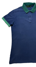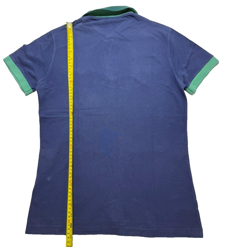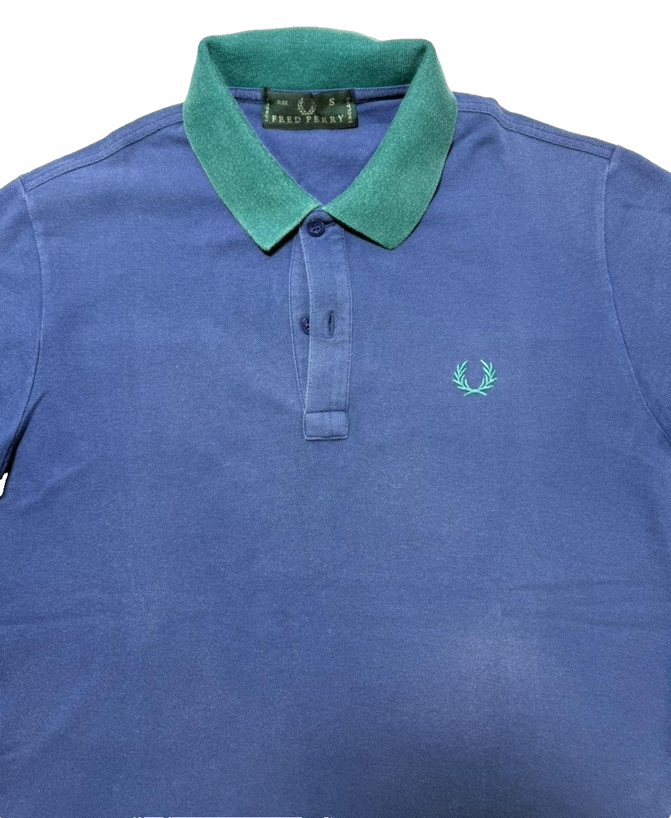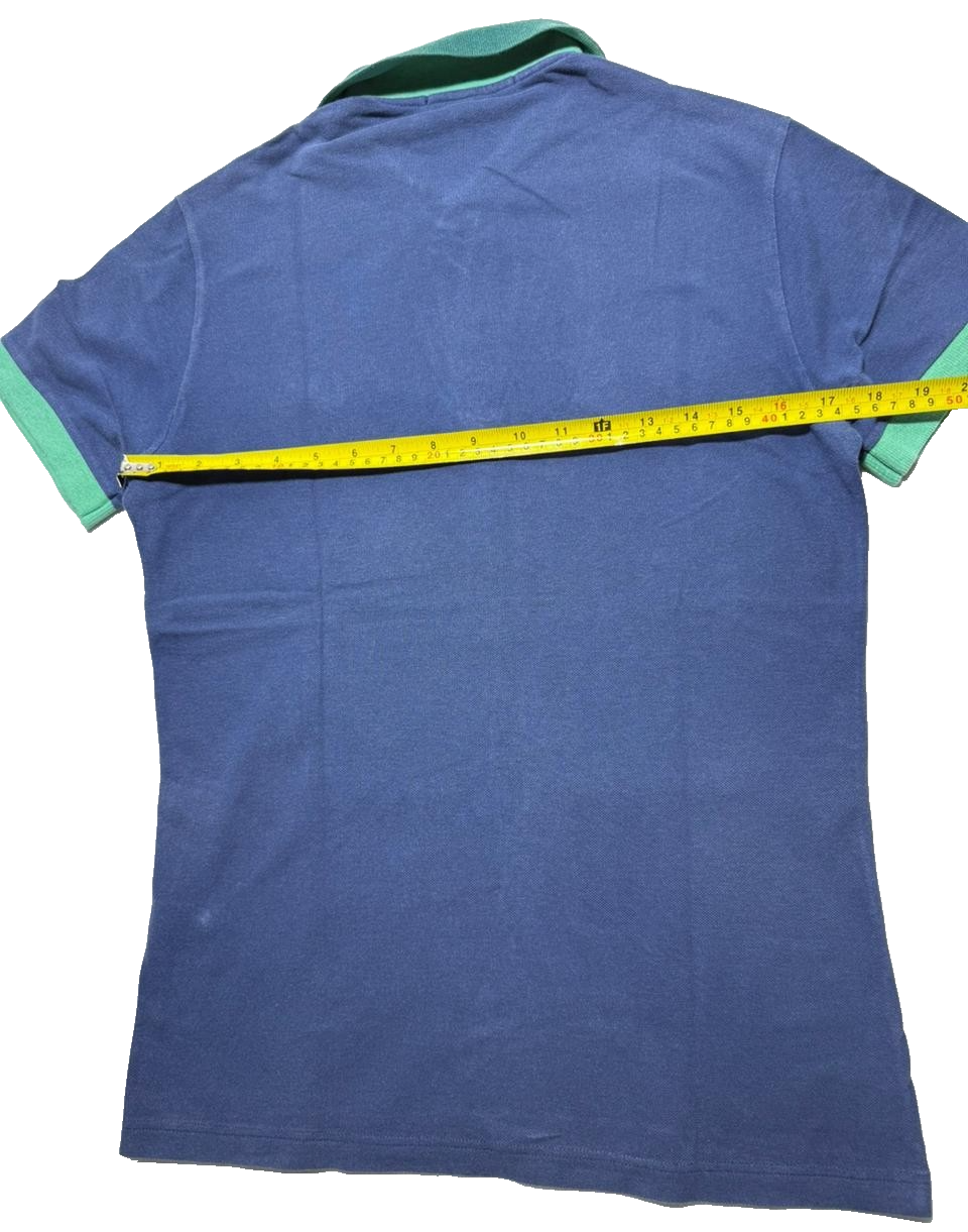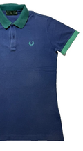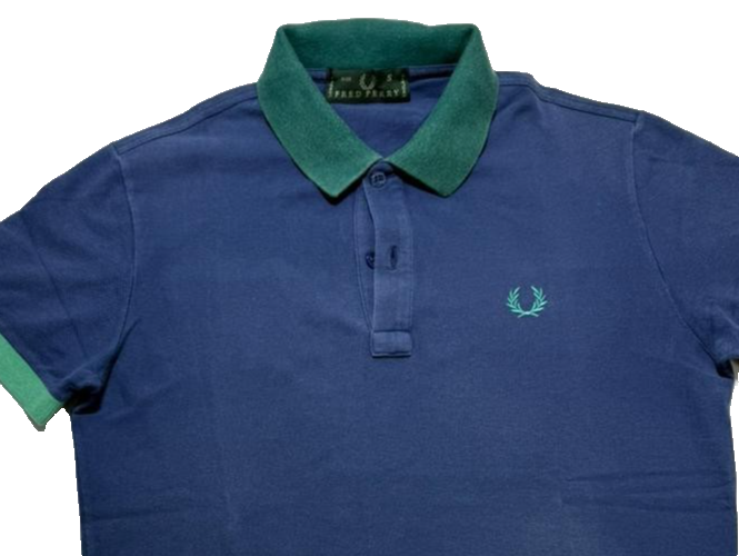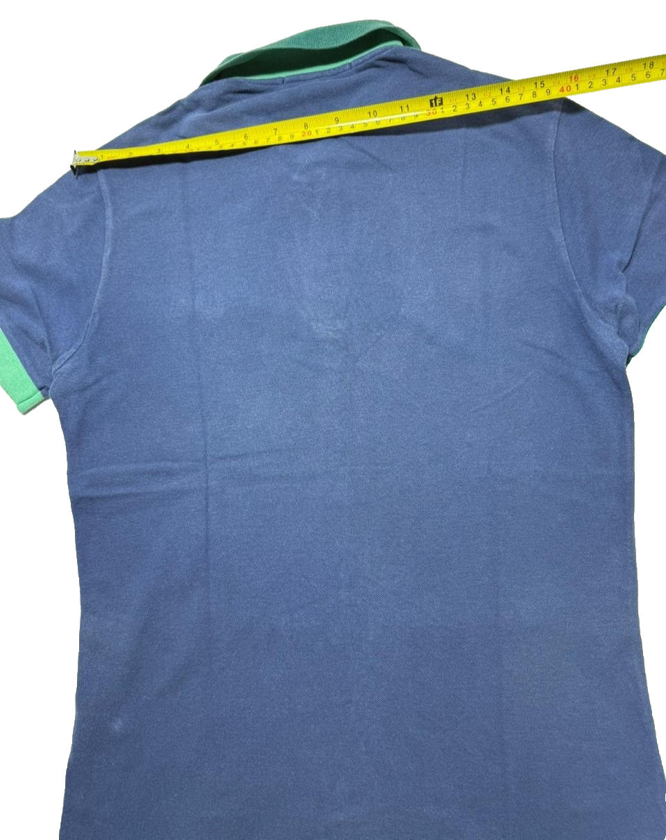 Fred Perry Womens Polo Blue With Green Trim Embroidered Laurel Size S