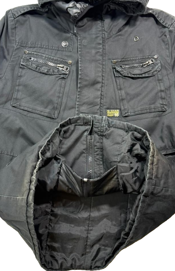 G-Star Mens Black Military Style Parka Jacket With Multiple Zip Pockets Size M