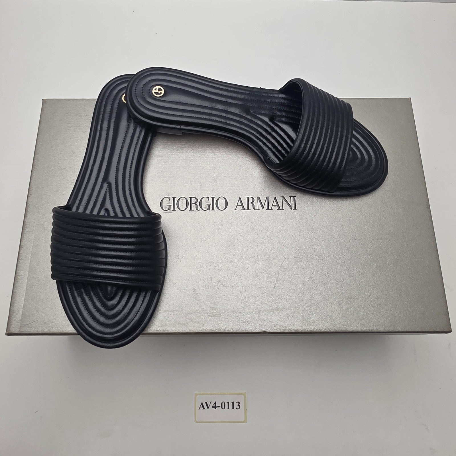 Giorgio Armani Black Embossed Leather Flat Sandals Size 36 Bnwt