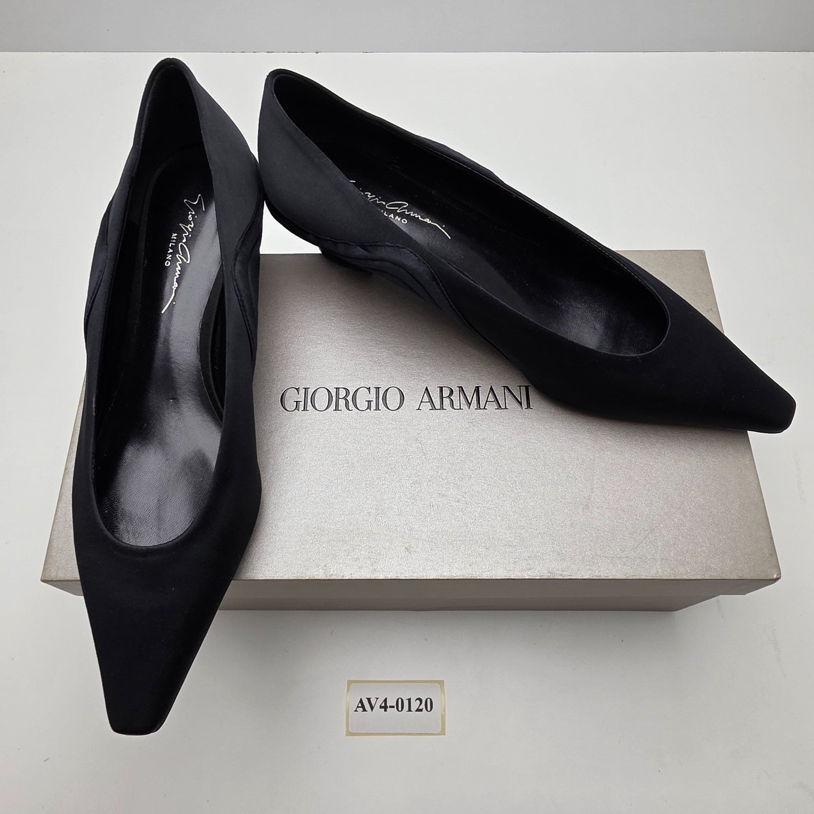 Giorgio Armani Black Pointed-Toe Pumps Decollate Size 37 Bnwt