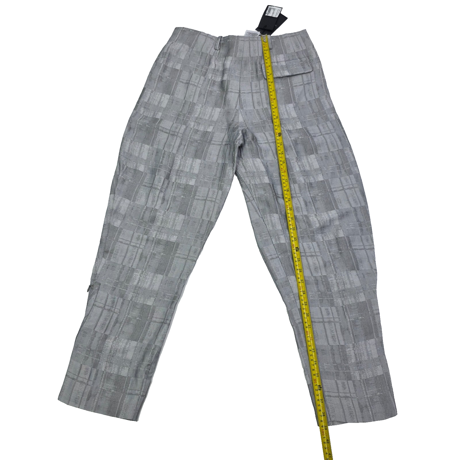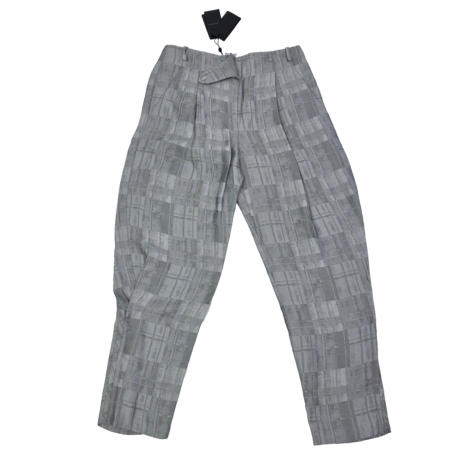 Giorgio Armani Check Motif Concealed Trousers Grey Wide Pleats Pants 42 Bnwt