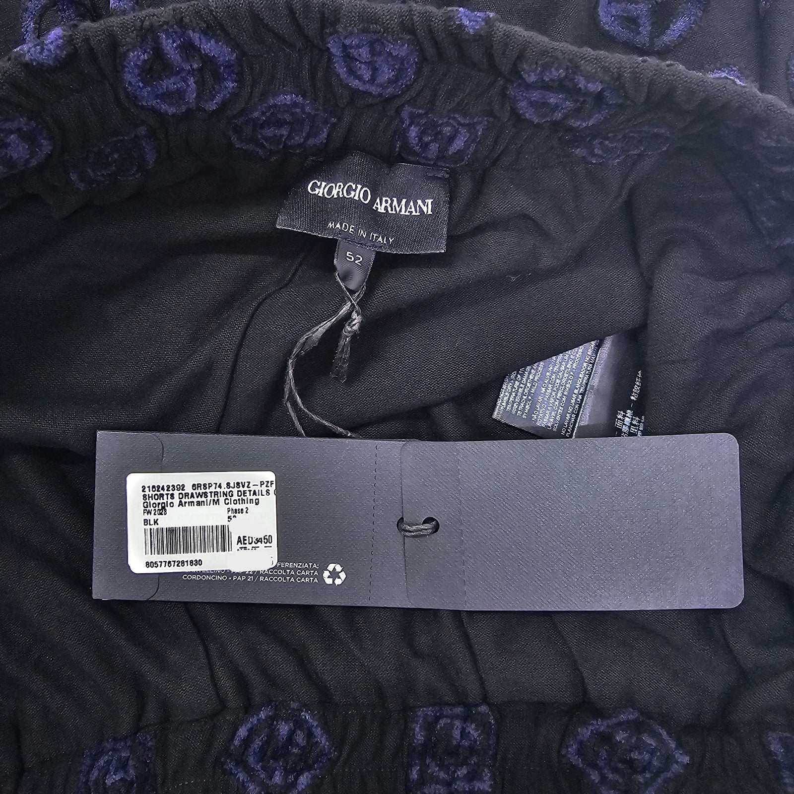 Giorgio Armani Cotton Bermuda Logo Shorts In Black 52 Bnwt