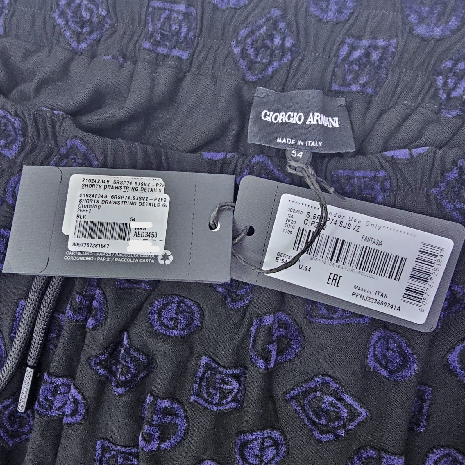Giorgio Armani Cotton Bermuda Logo Shorts In Black 54 Bnwt