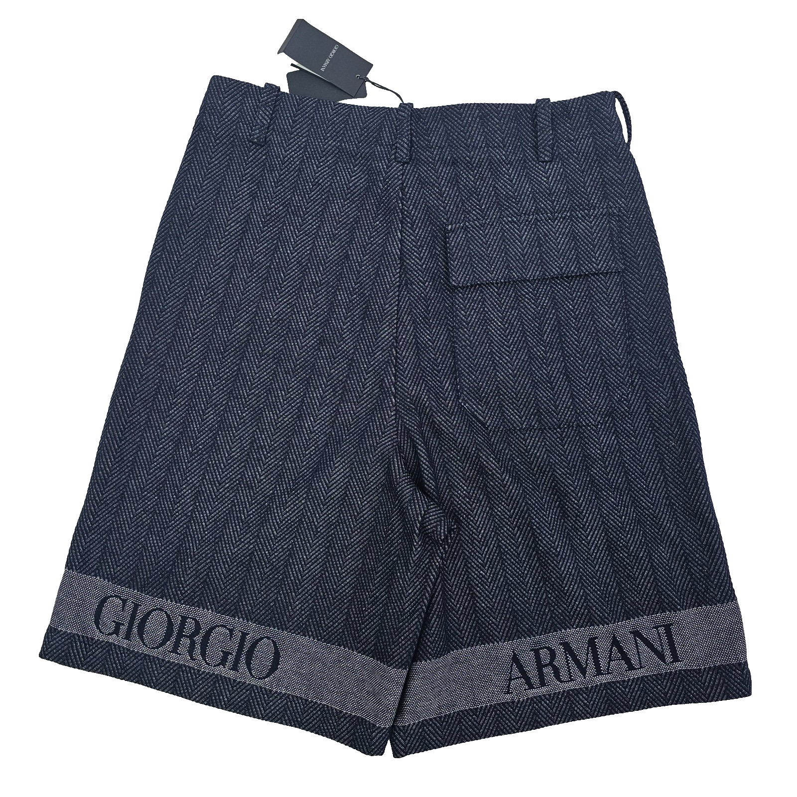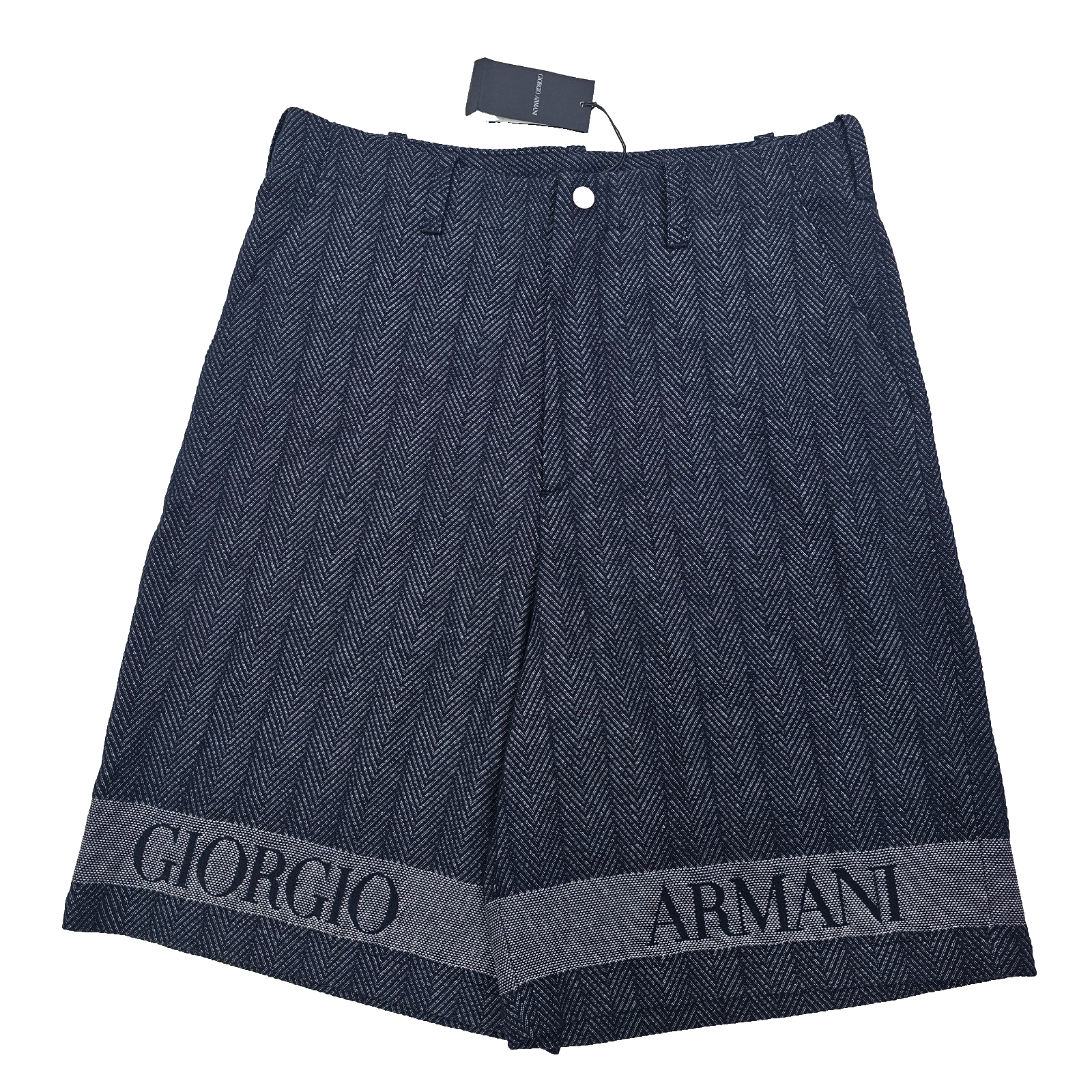 Giorgio Armani Cotton Bermuda Logo Shorts In Jacquard Navy 50 Bnwt