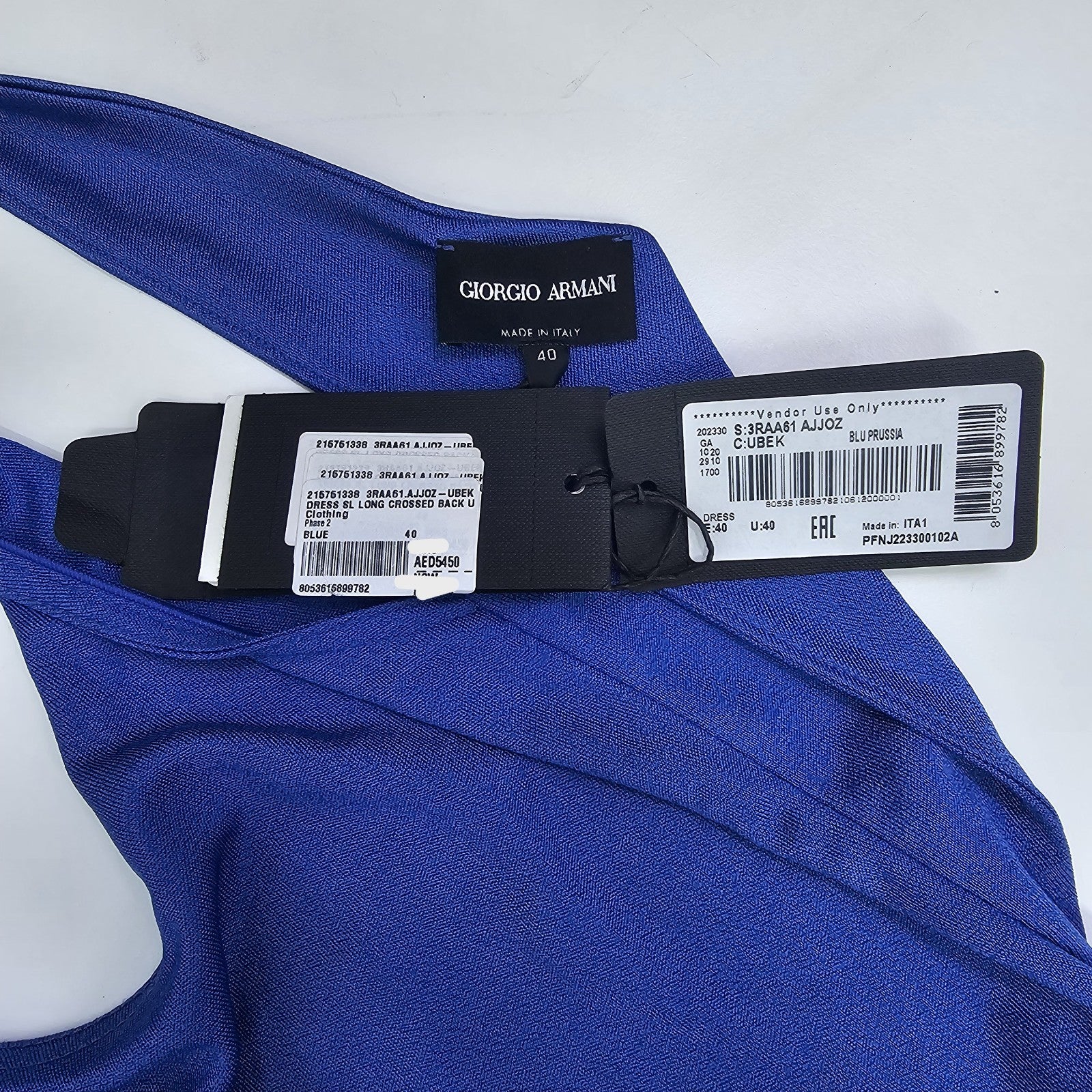Giorgio Armani Draped Satin Jersey Crossed Back Midi Dress Blue 40 Bnwt