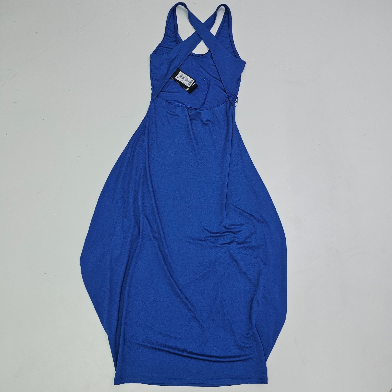 Giorgio Armani Draped Satin Jersey Crossed Back Midi Dress Blue 44 Bnwt