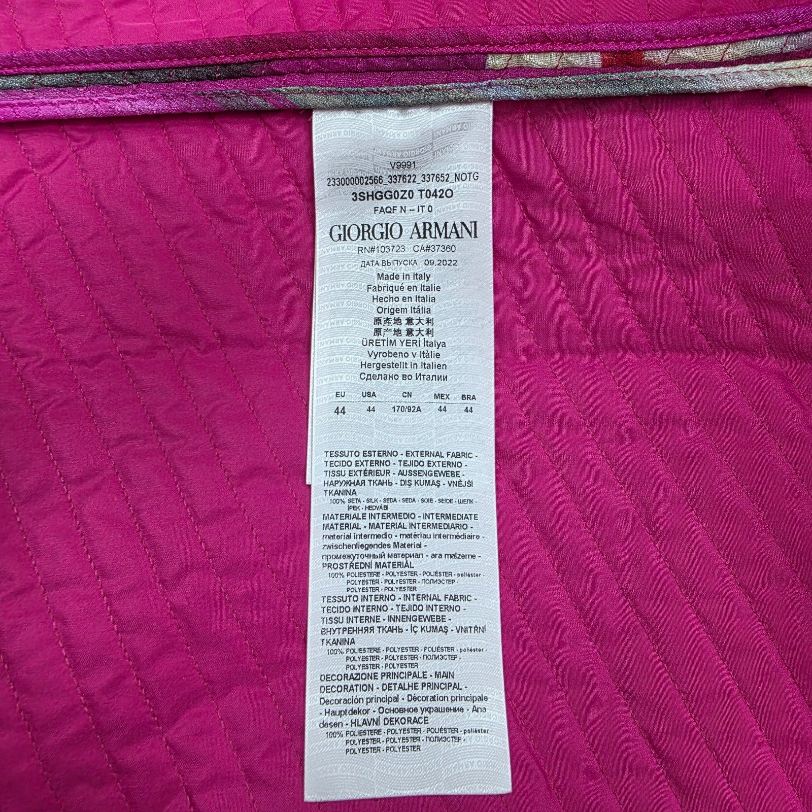 Giorgio Armani Fuchsia Printed Quilted Silk Jacket Floral Print 44 Bnwt