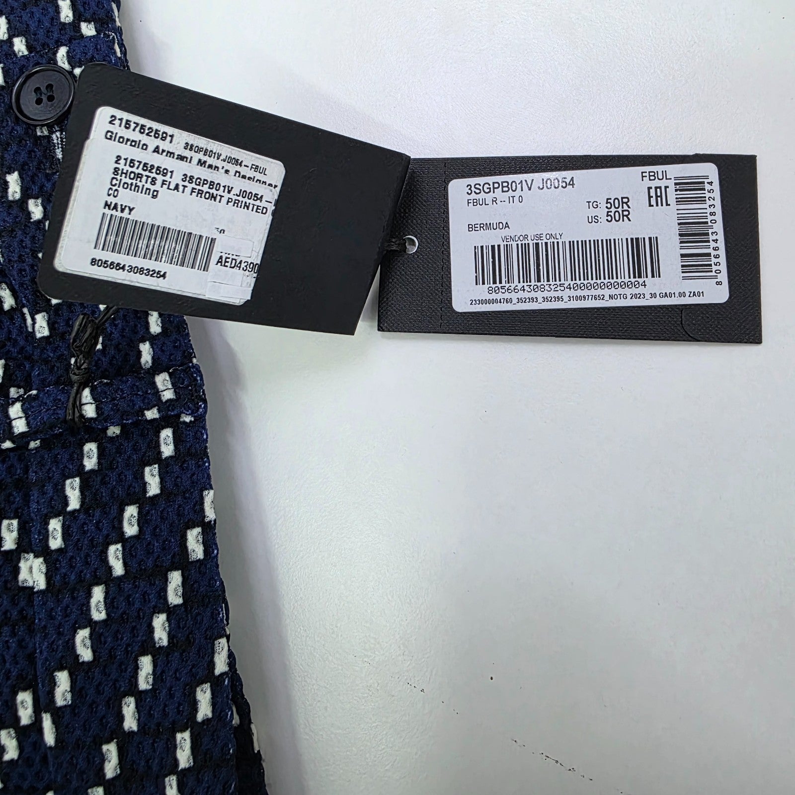 Giorgio Armani Patterned Bermuda Shorts Navy Blue & White W34 Bnwt