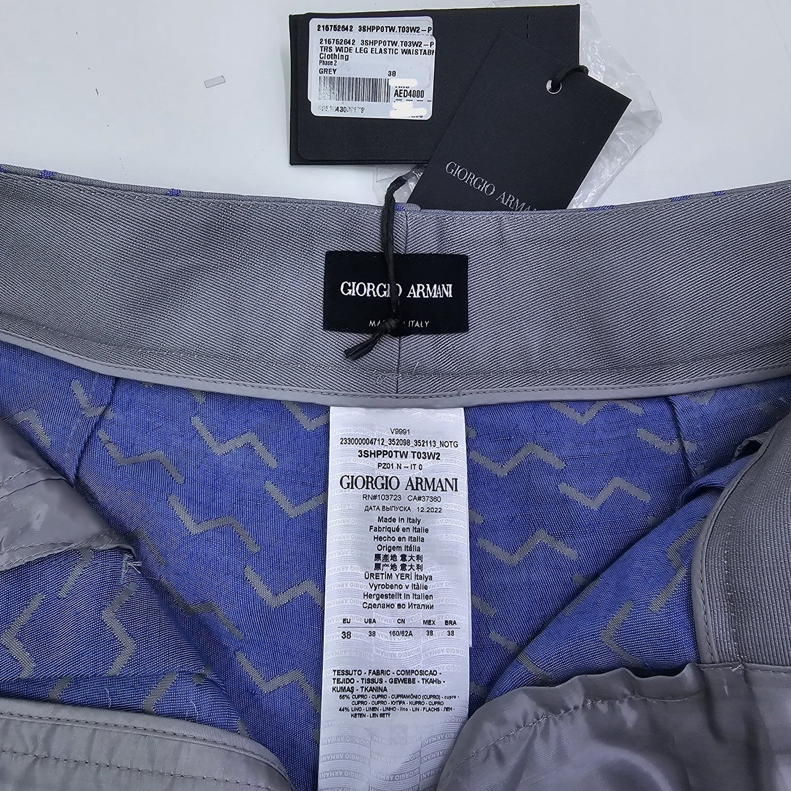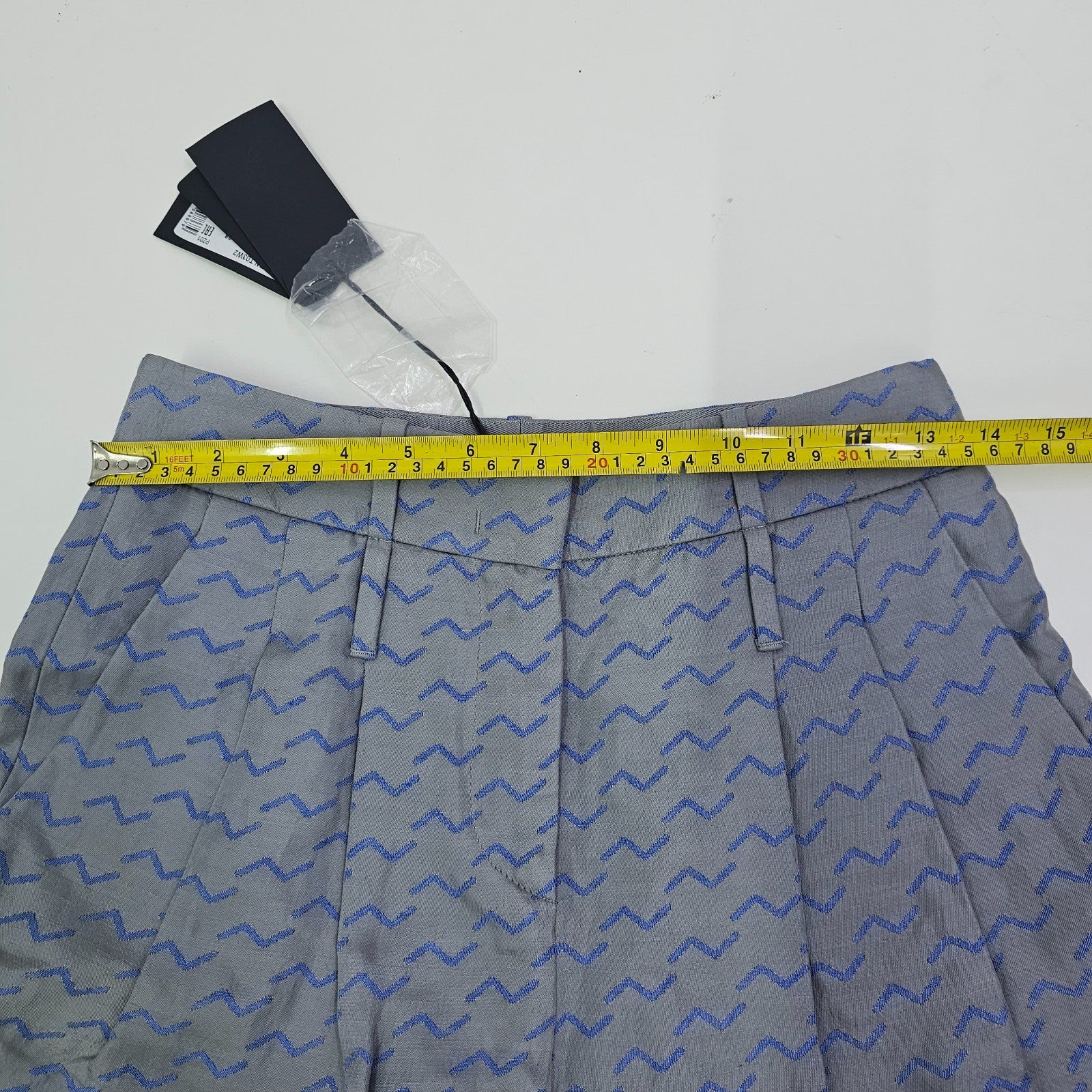 Giorgio Armani Wide Leg Elastic Trousers Grey With Blue Wavy Pattern 38 Bnwt