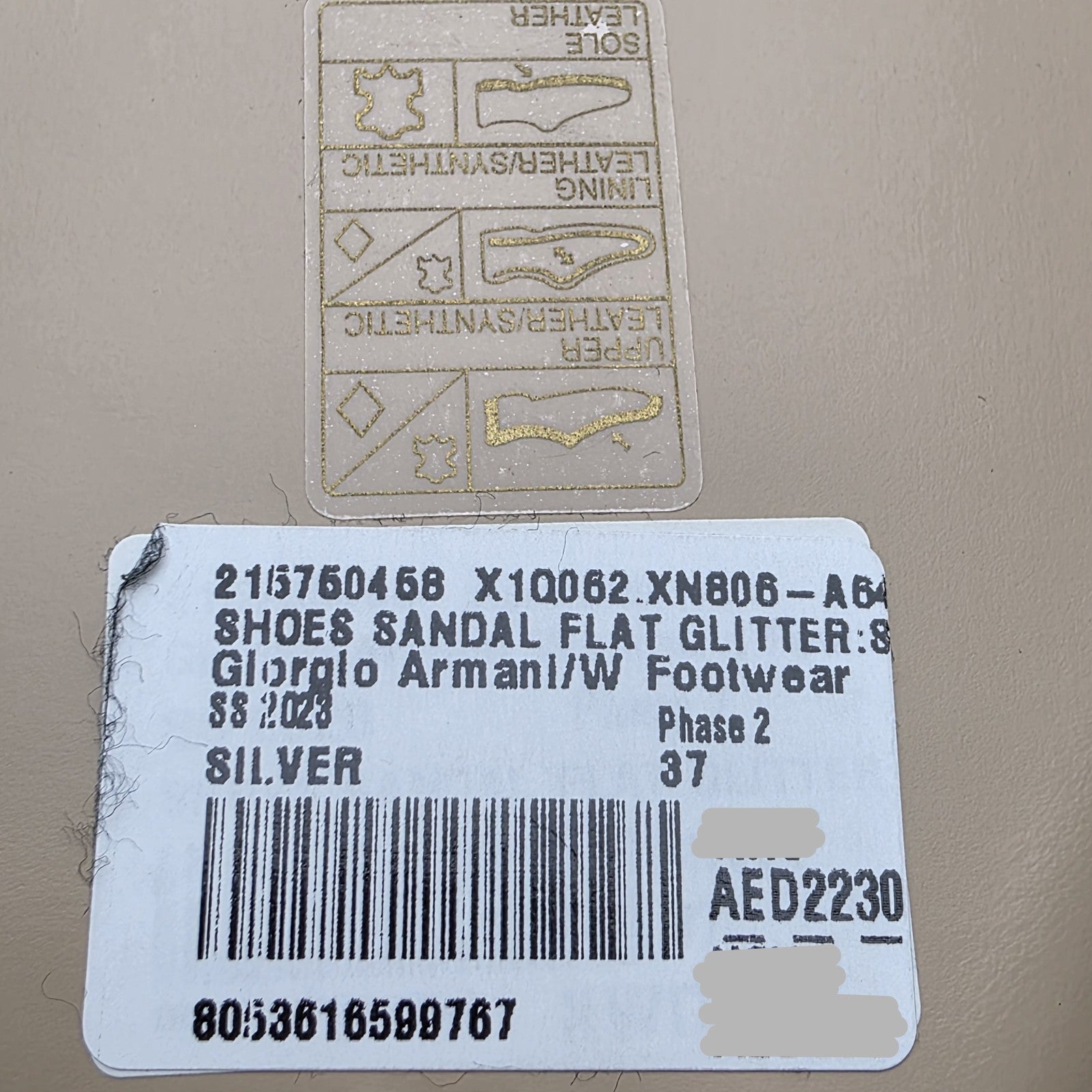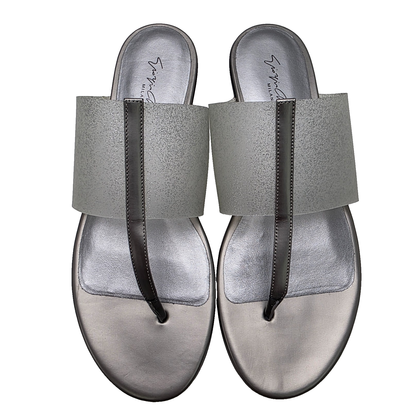 Giorgio Armani Women'S Thong Sandals Metallic Silver Finish 37 Bnwt