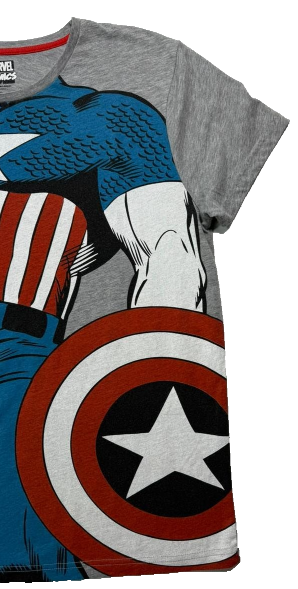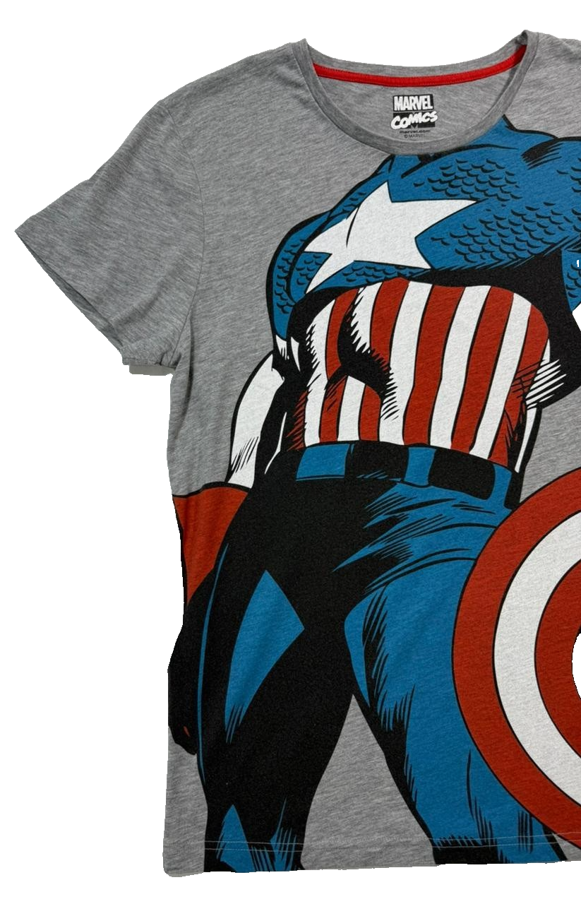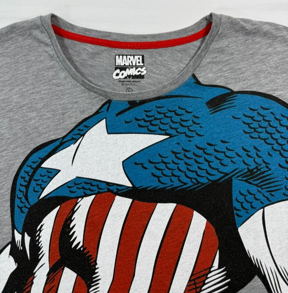 Grey Cotton Marvel Comics Captain America Graphic T-Shirt - Size L