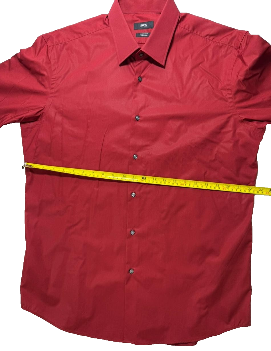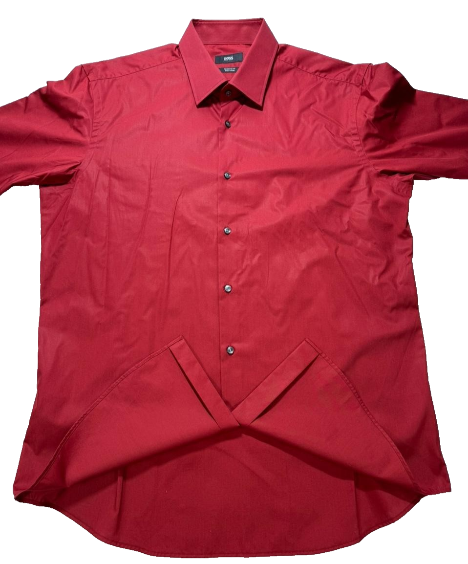 Hugo Boss Men’s Shirt Red Regular Fit Easy Iron Size 43 Long Sleeve