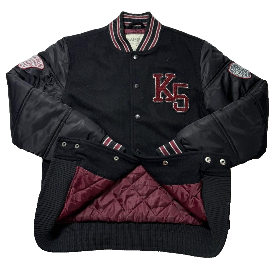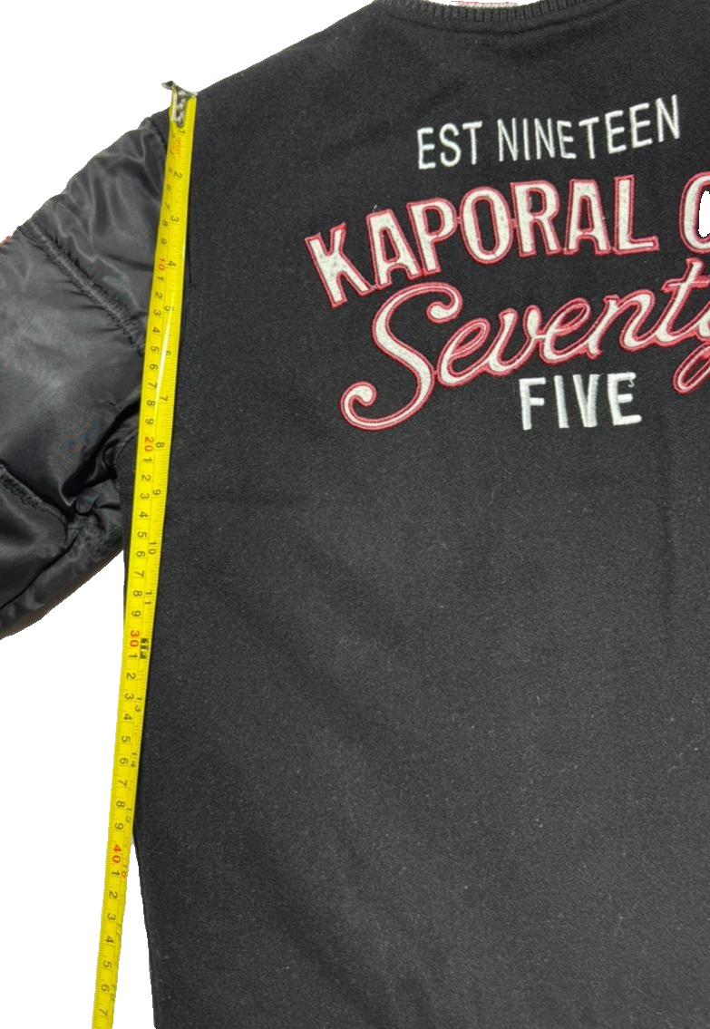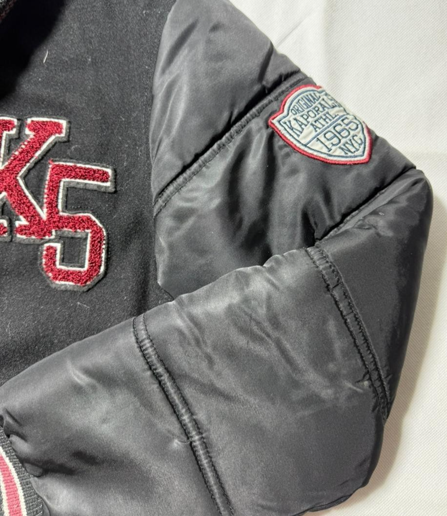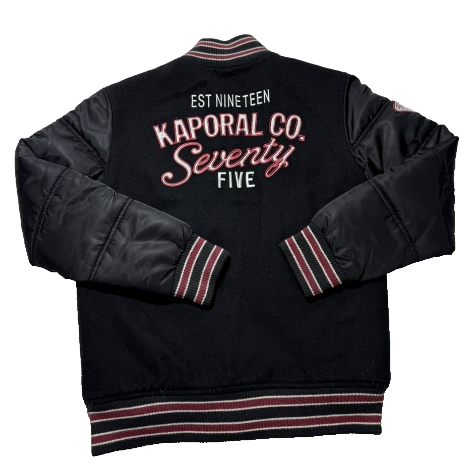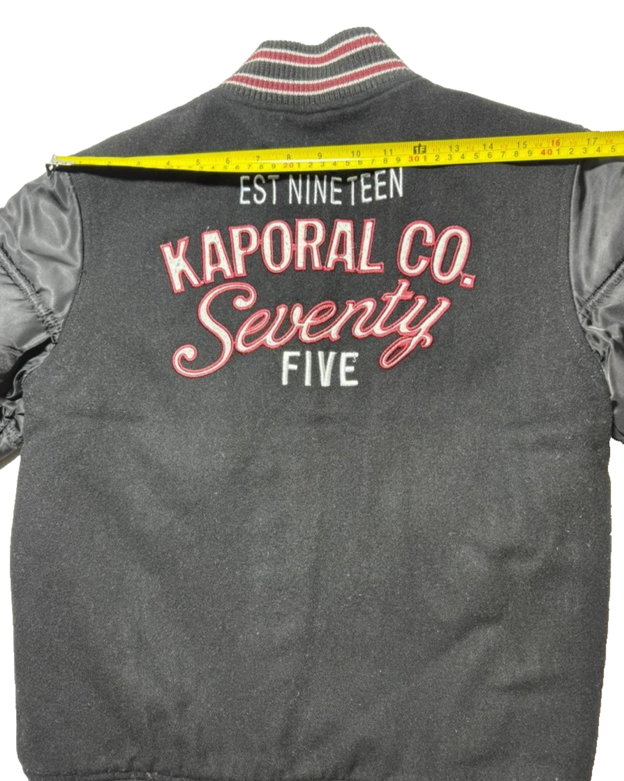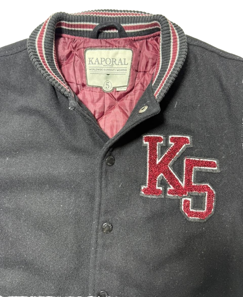 Kaporal K5 Varsity Bomber Jacket Black Men�S Size 14 Patch Logo Puff Sleeves