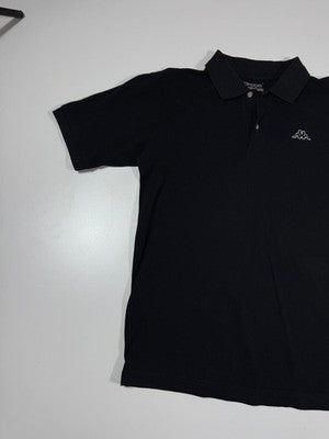 Kappa Black Pique Polo Shirt M Short Sleeve Button Collared Logo