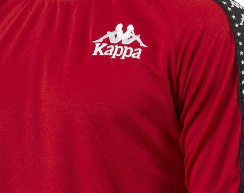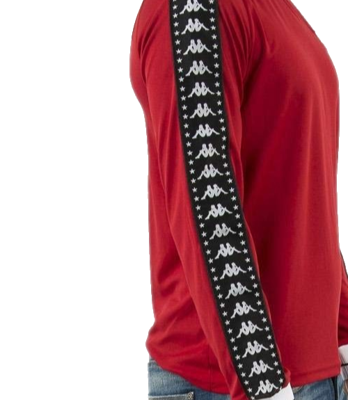 Kappa Men'S Red Banda Long Sleeve Shirt White Logo Taped Sleeves Stars Size M