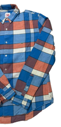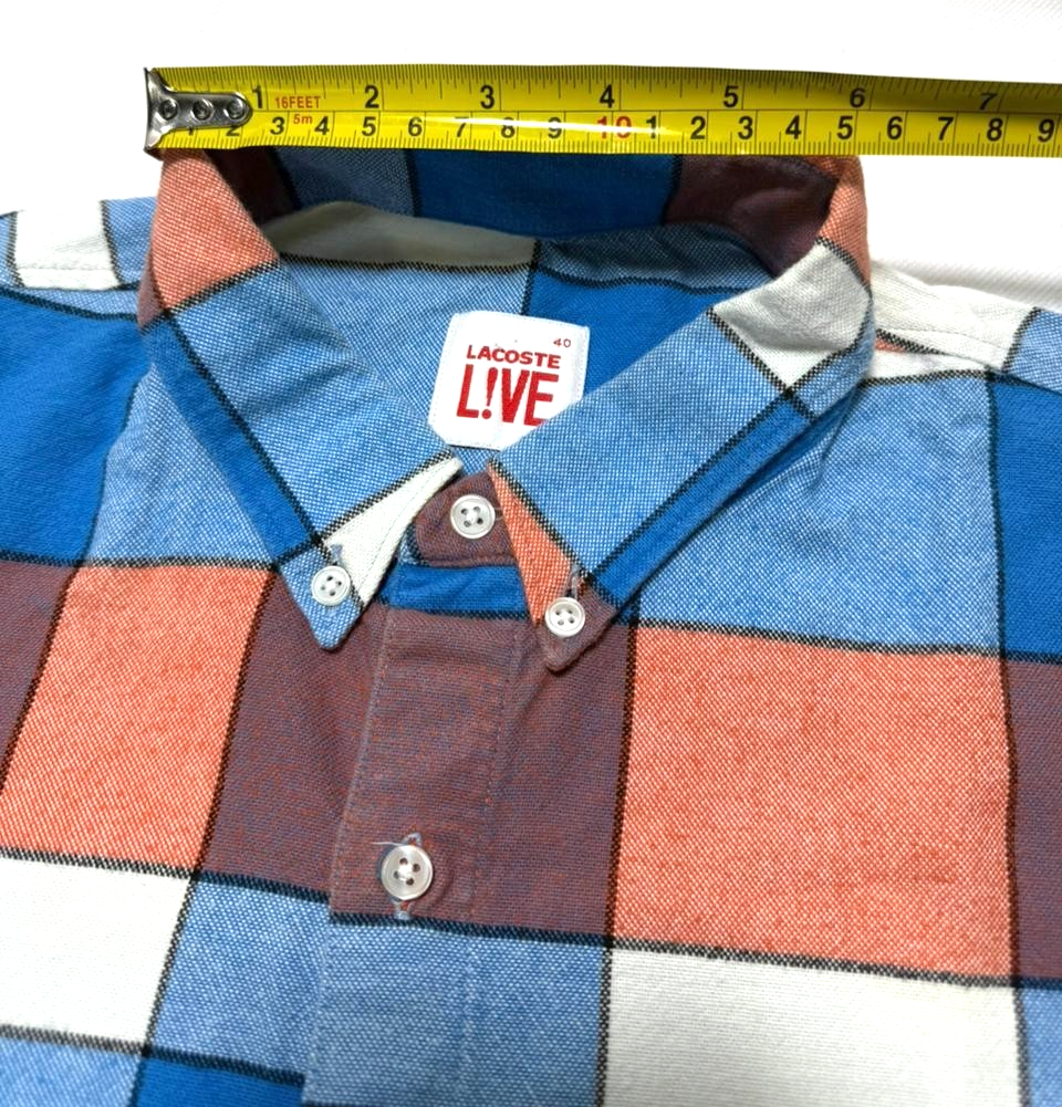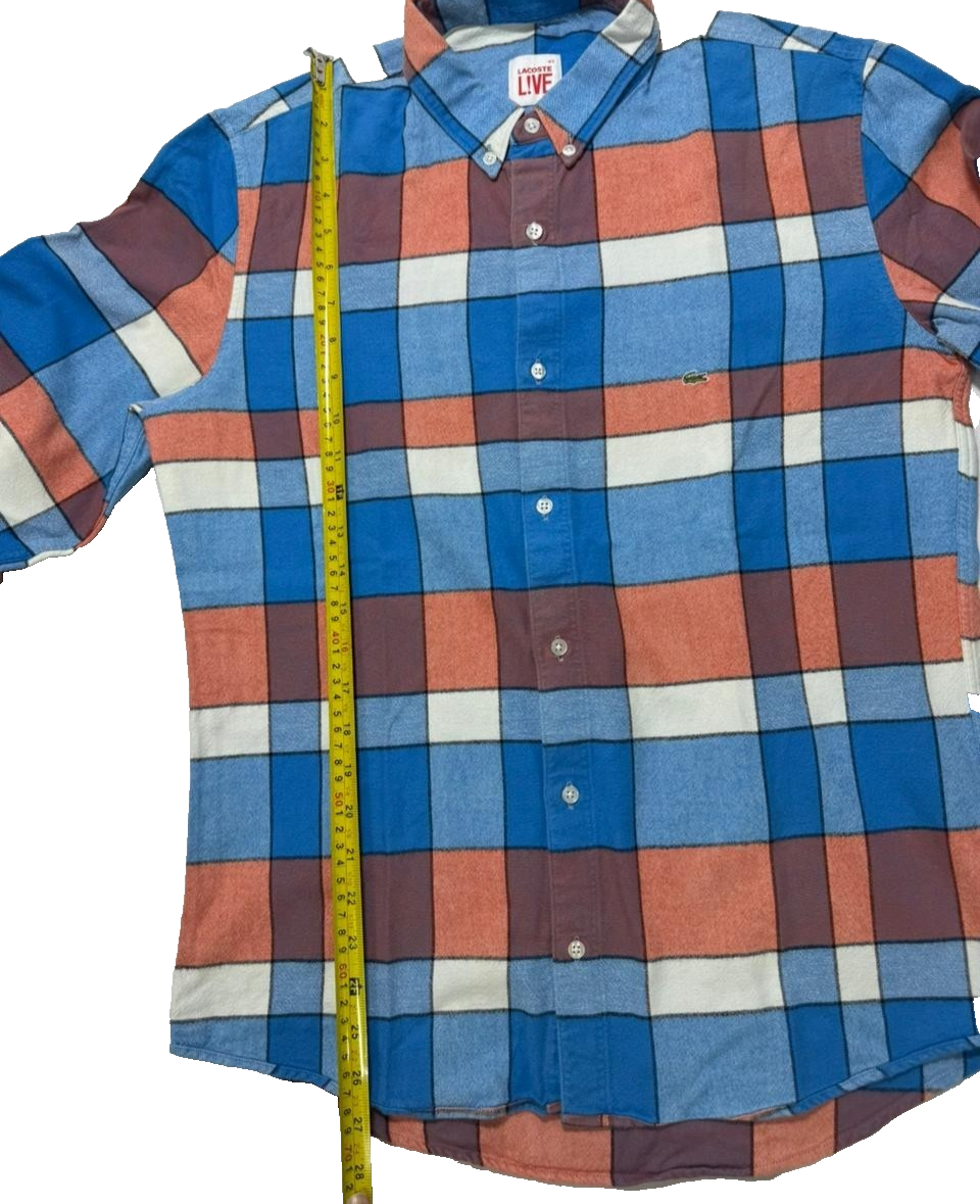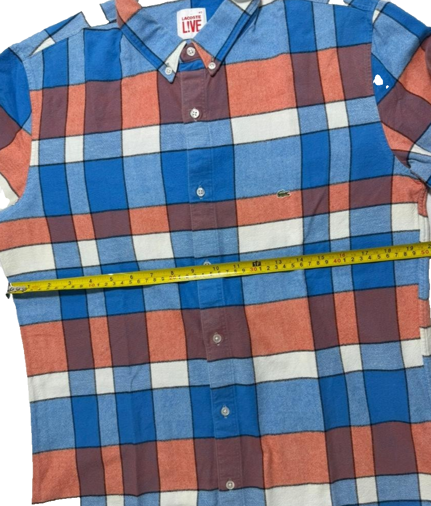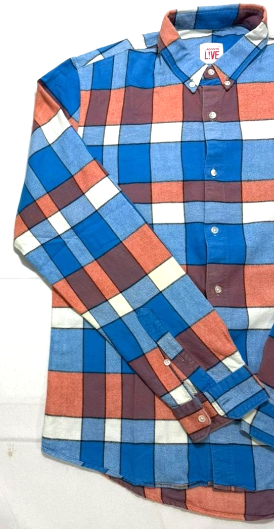 Lacoste Live Men'S Long Sleeve Button Down Shirt Plaid Check Blue Orange White