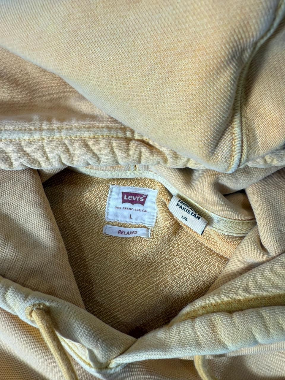 Levi’s Men Beige Pullover Hoodie Relaxed Fit Size L Hooded Sweatshirt