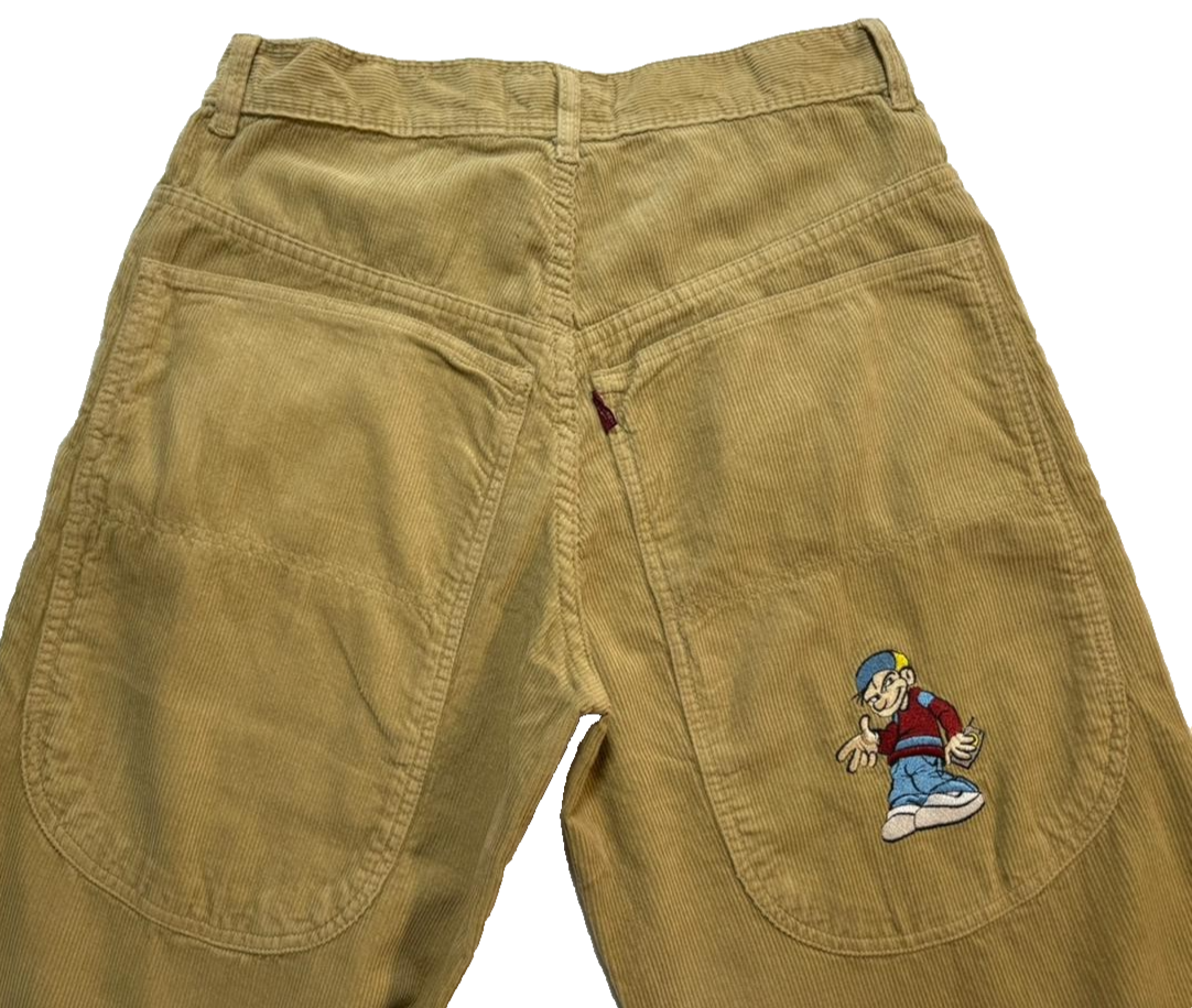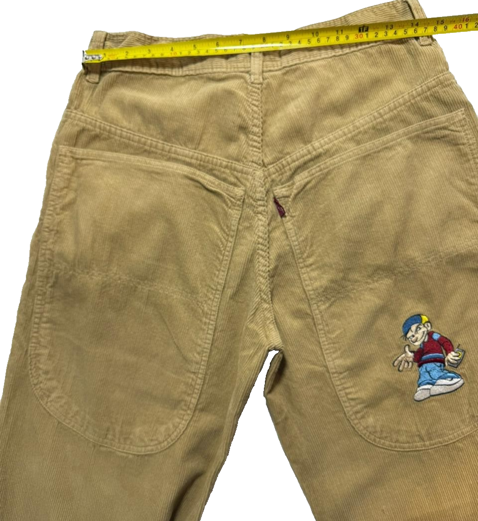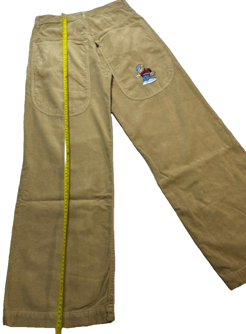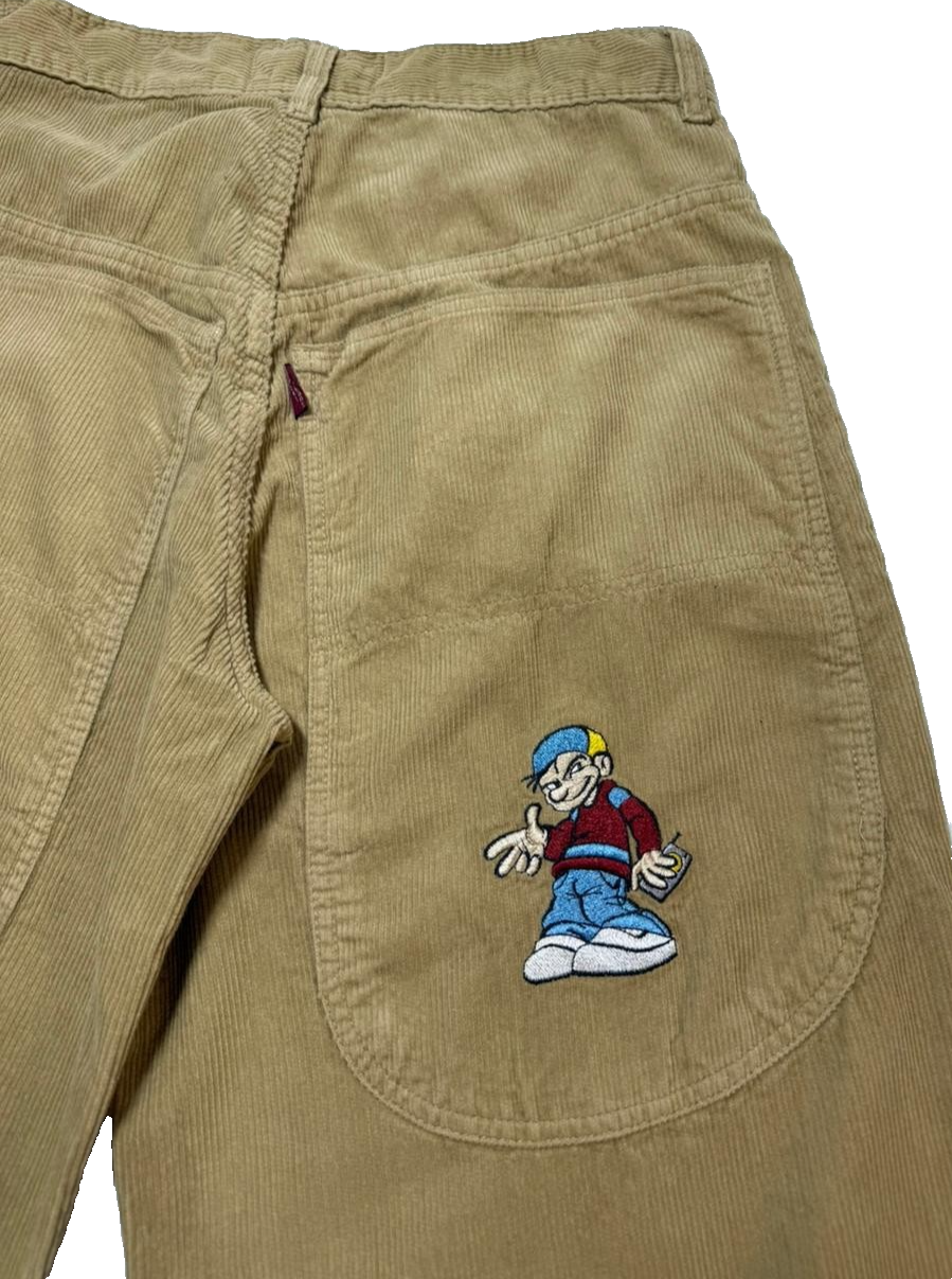 Lobel Cartoon Embroidery Wide Leg High Rise Corduroy Pants Size 38 | Unisex