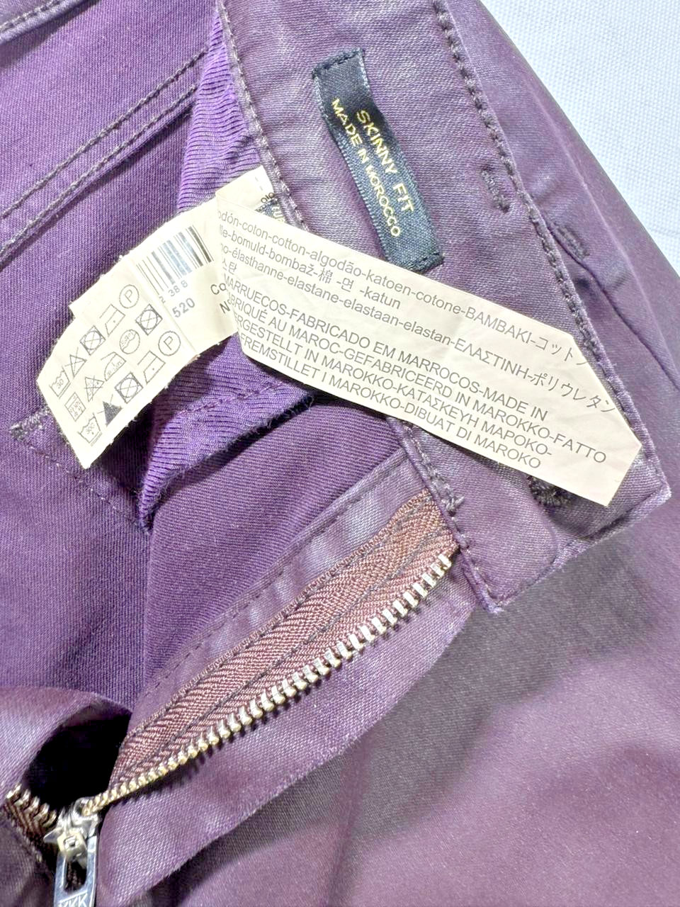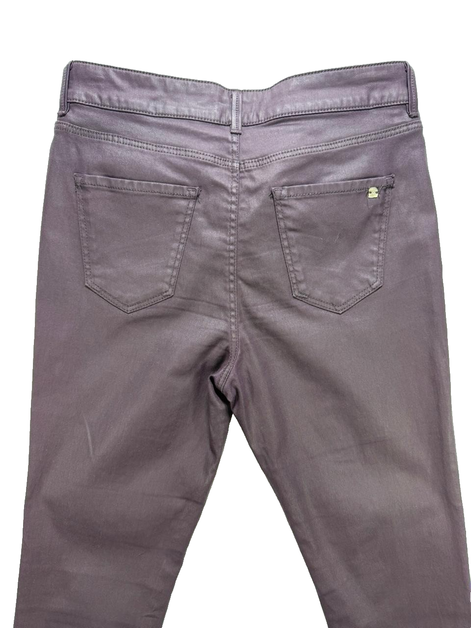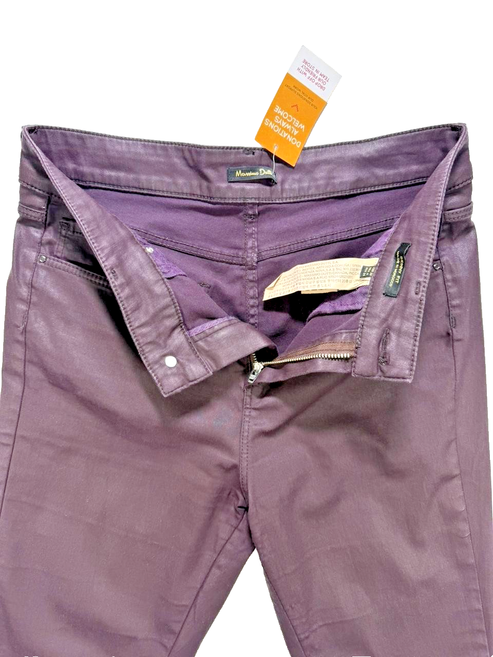 Massimo Dutti Jeans Womens - Purple Coated Wet Leather Look Biker Pant Trousers