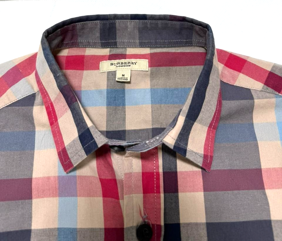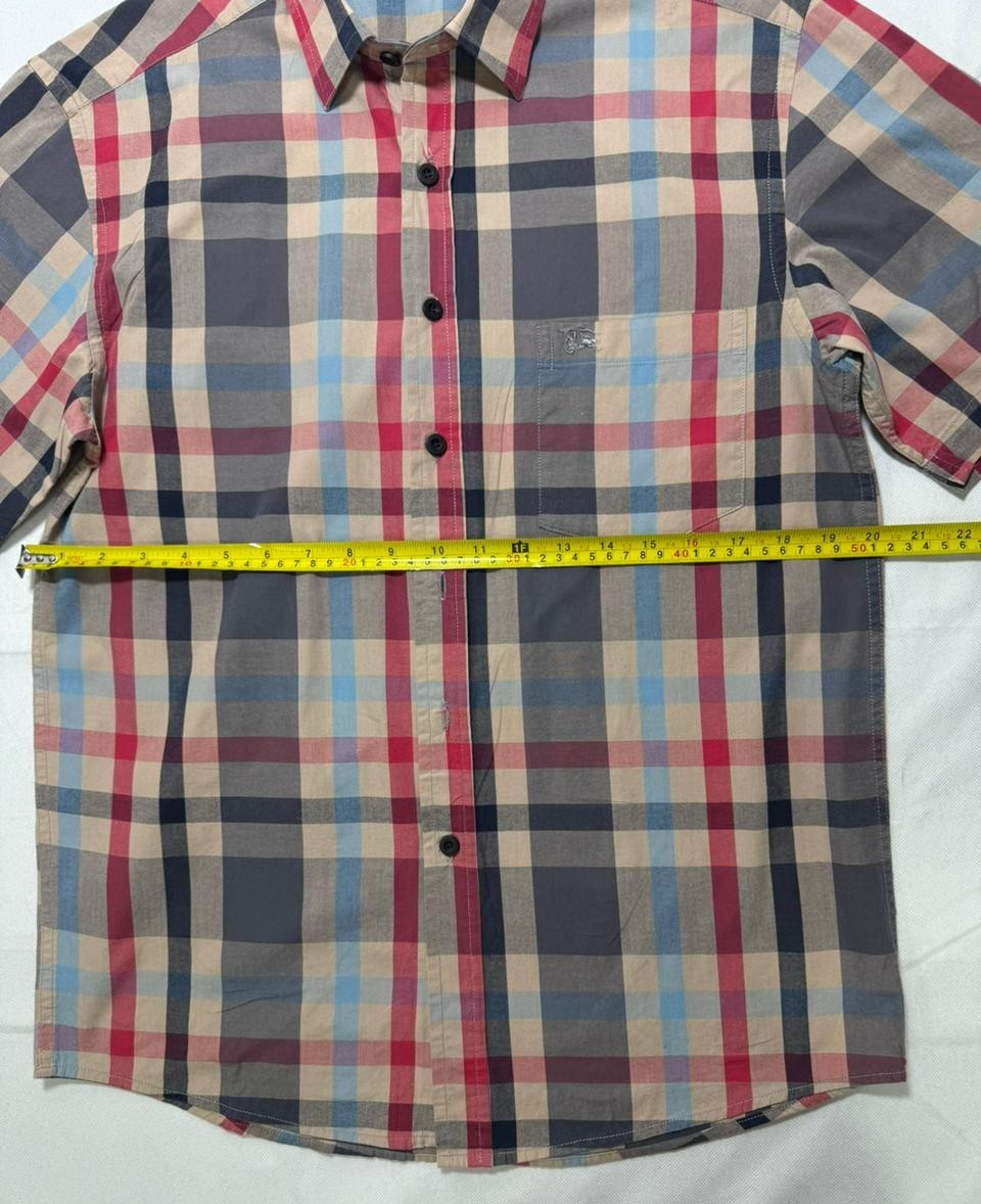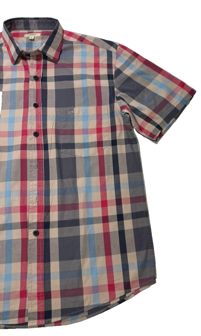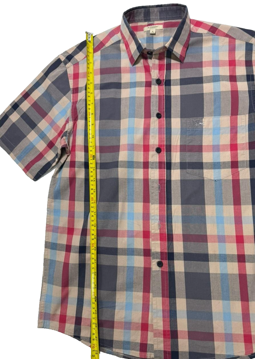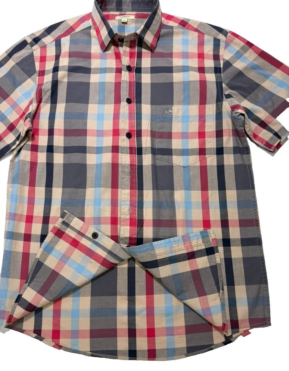 Men'S Burberry Brit Short Sleeve Plaid Check Button Down Shirt Size M