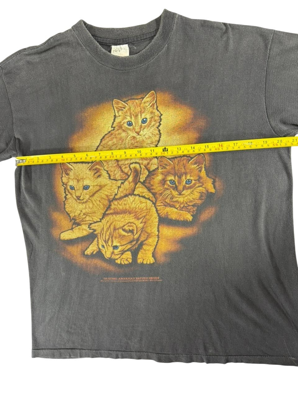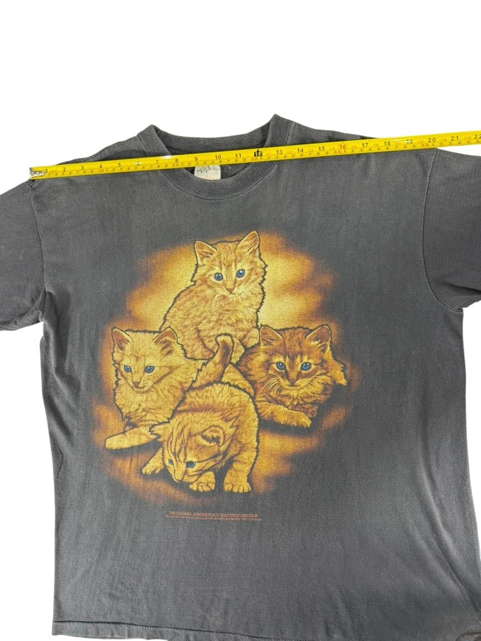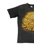 Mens Graphic Cat TShirt Black Faded Vintage Style Crew Neck Medium Tag Faded