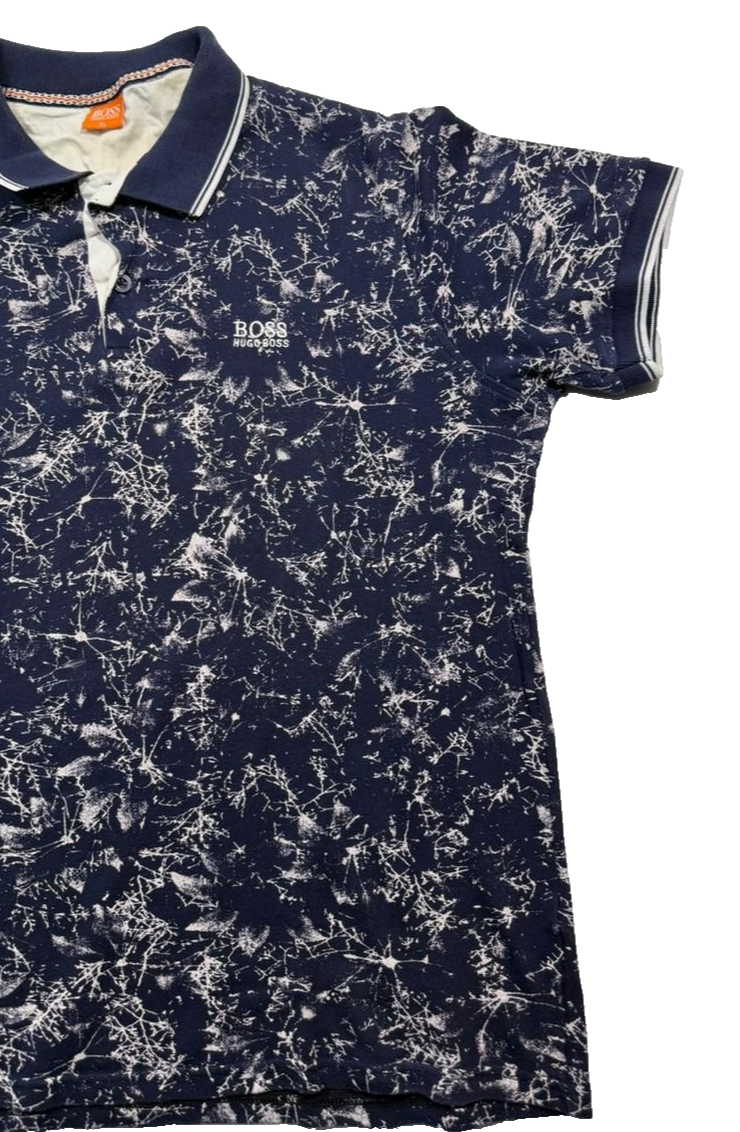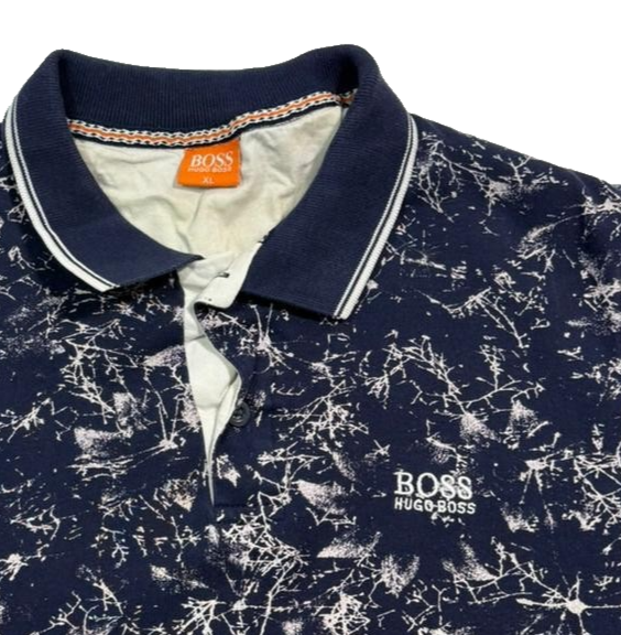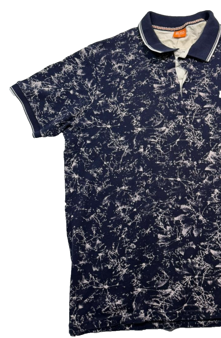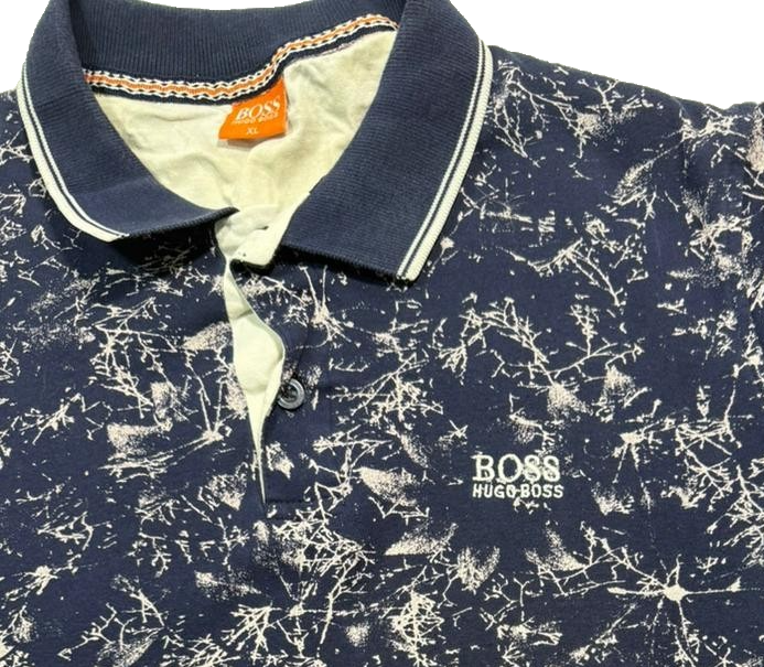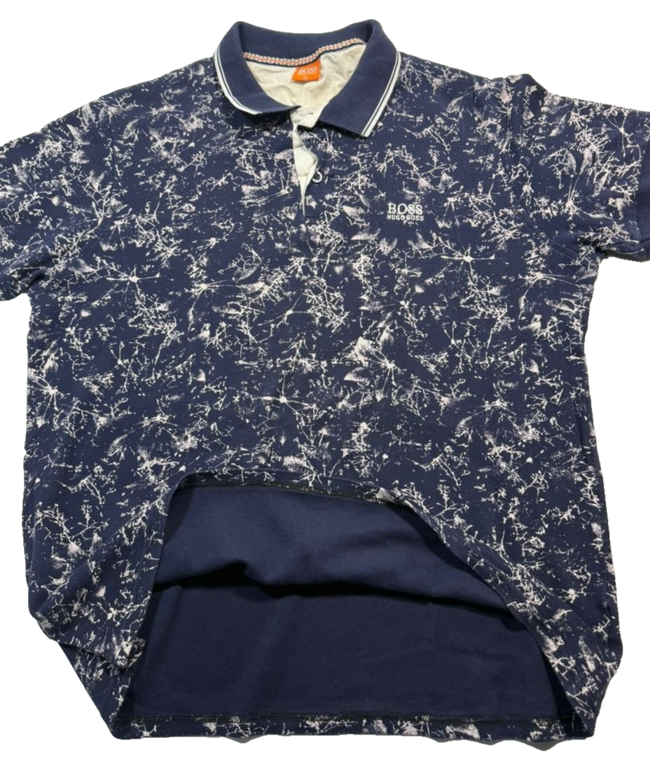 Mens Hugo Boss Navy Blue And White Splatter Print Polo Shirt Xl
