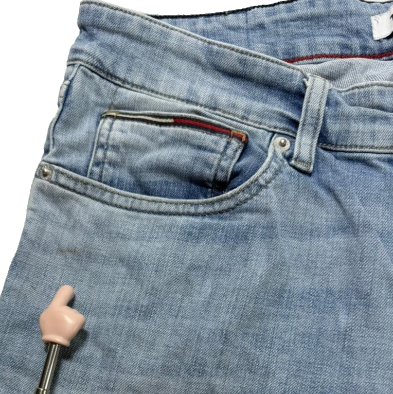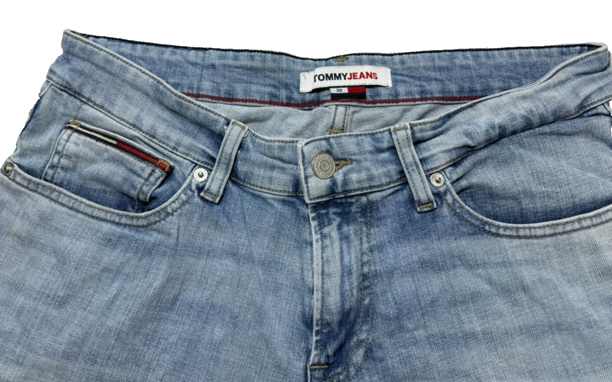Mens Vintage Tommy Jeans Denim Shorts - W30 Light Blue Distressed Jorts