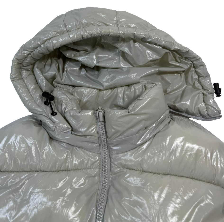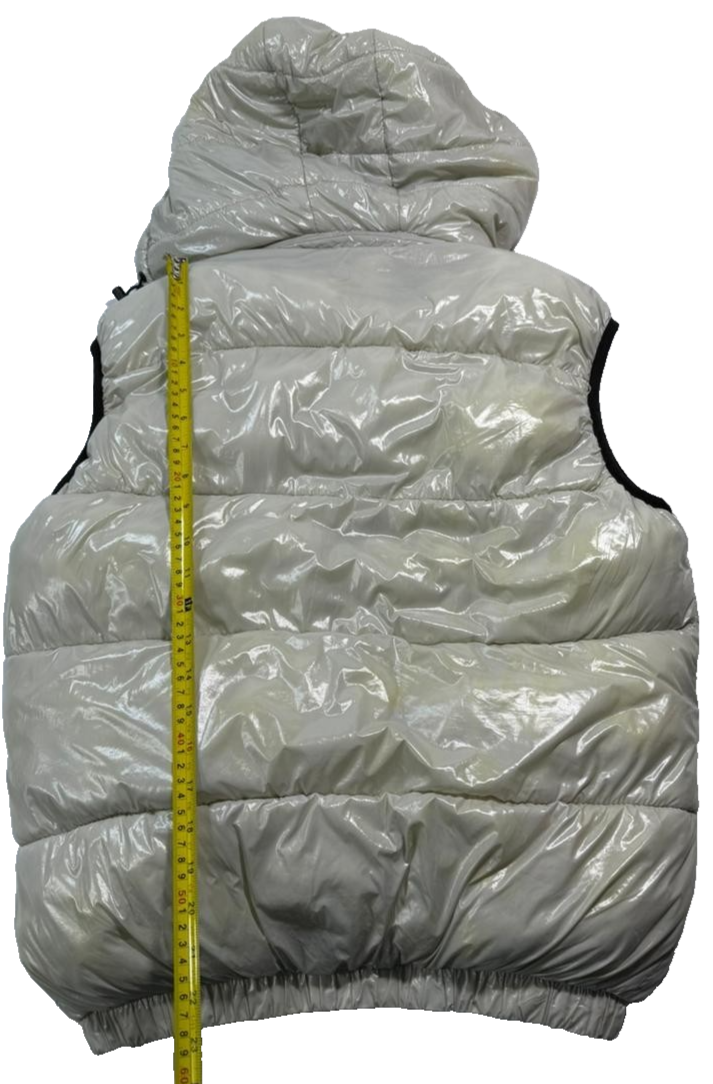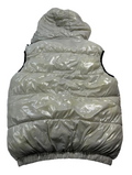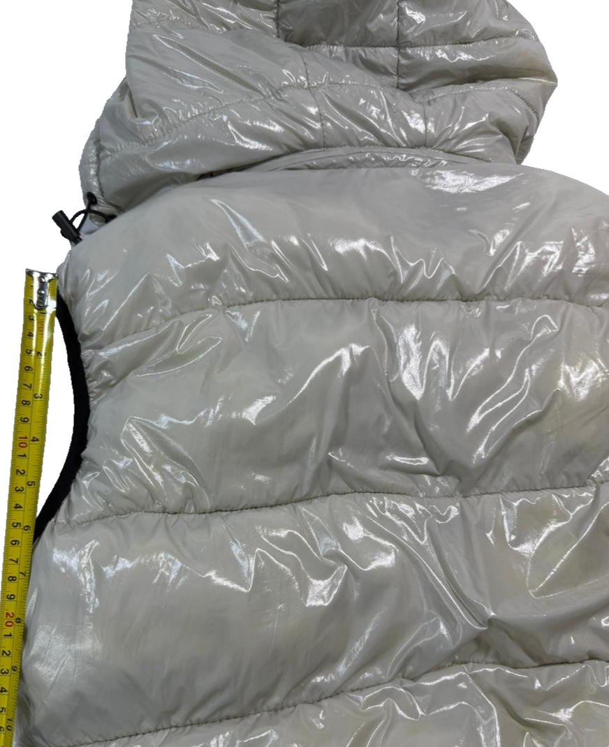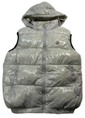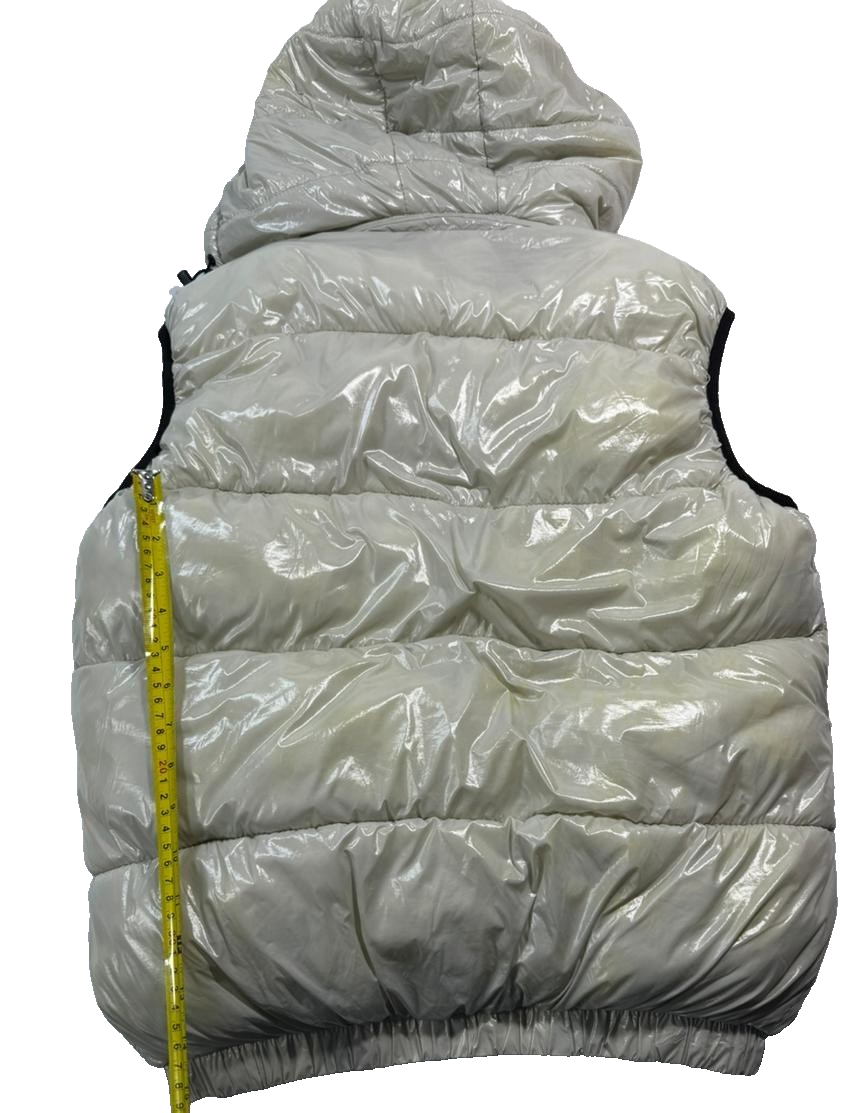 Moncler Men�S Off-White Shiny Puffer Vest Detachable Hood Logo Patch Size M