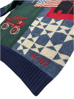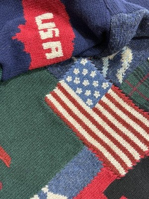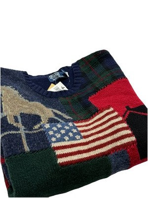New Polo Ralph Lauren Flag Patchwork 100% Wool Sweater L (Msrp $998)