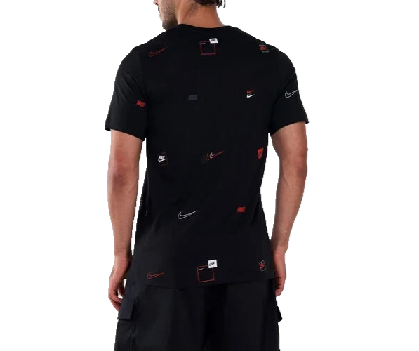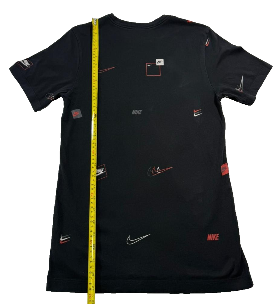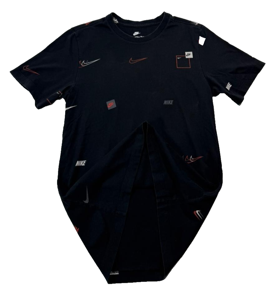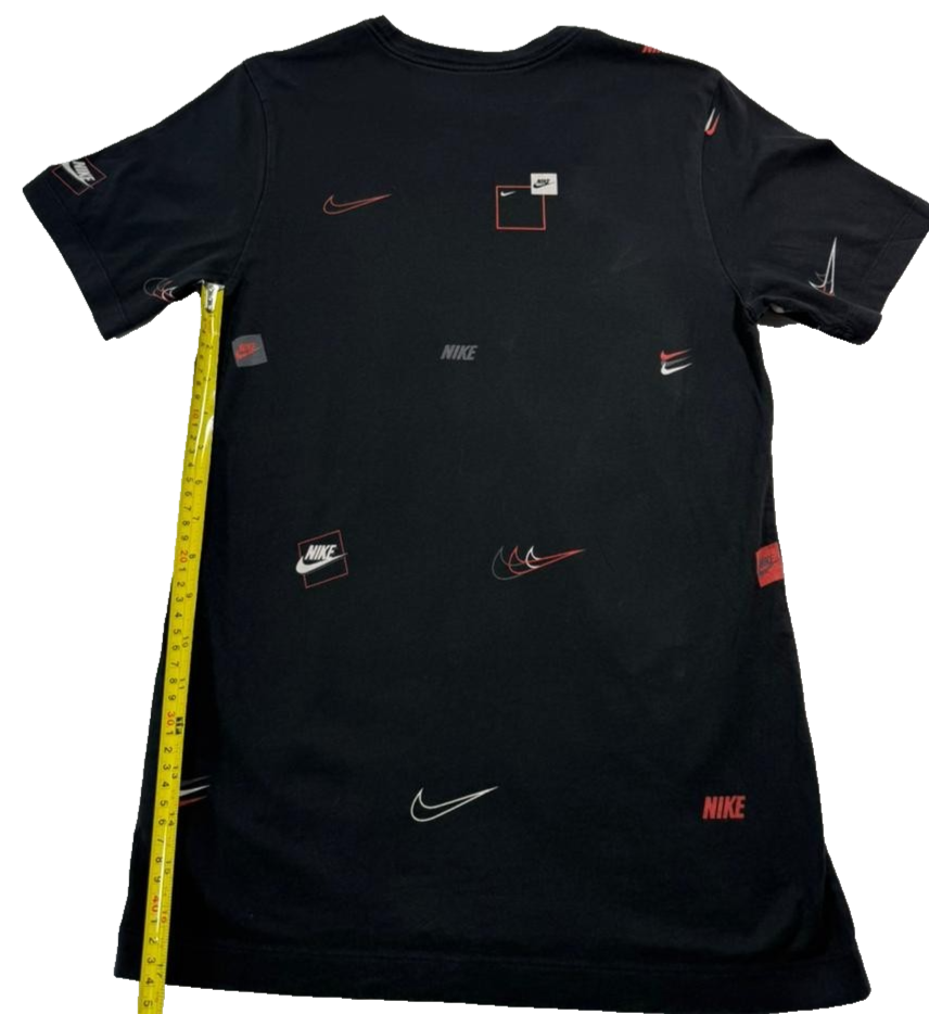 Nike Black All Over Print T-Shirt Swoosh Logo Graphic Unisex Size Xs