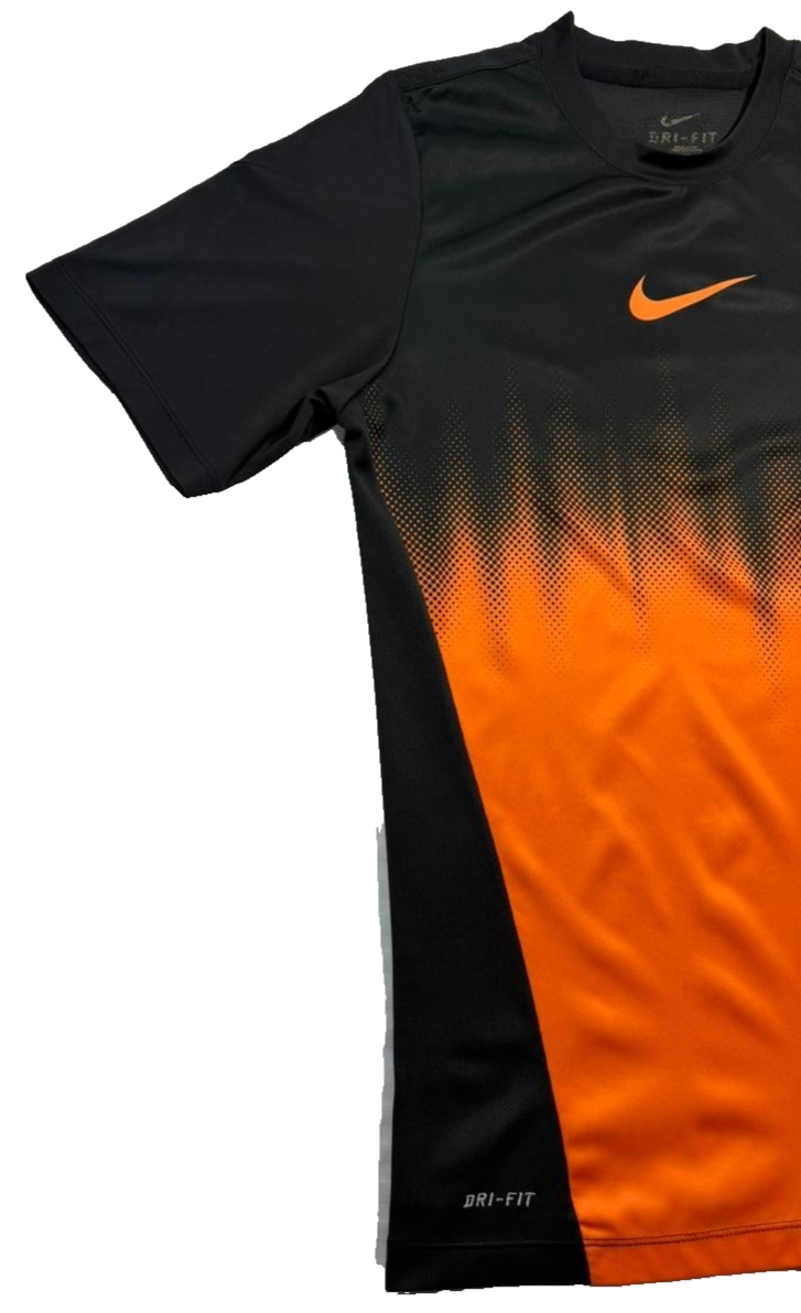 Nike Dri-Fit Men'S Training T-Shirt Black Orange Gradient Swoosh Athletic Large